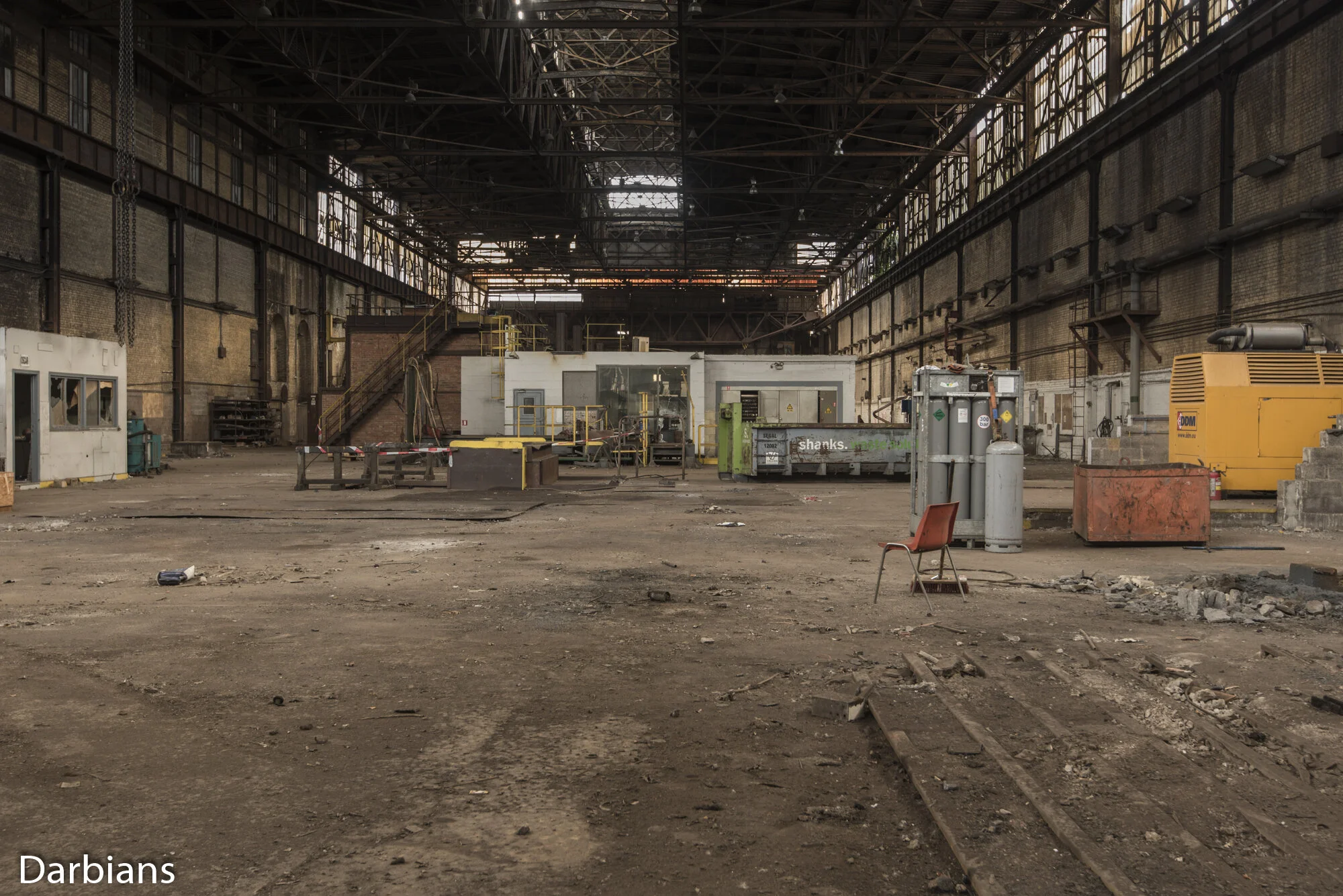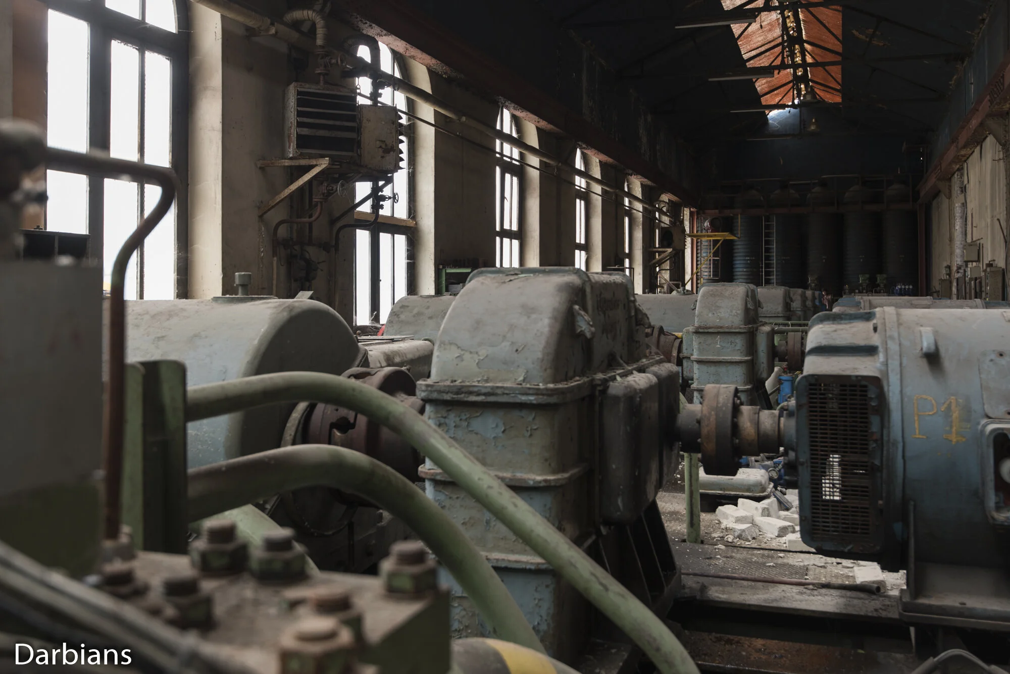 CMI Seraing: We then head to the next building which was stripped. Then the compressor hall, brick building far left.