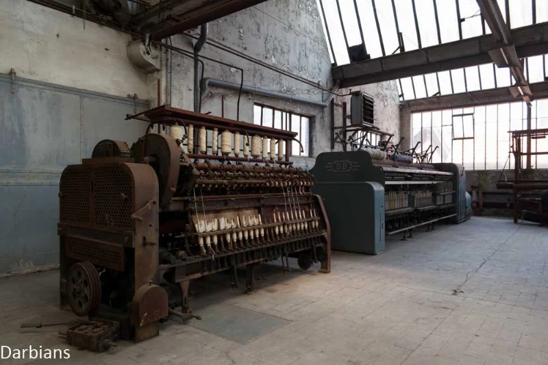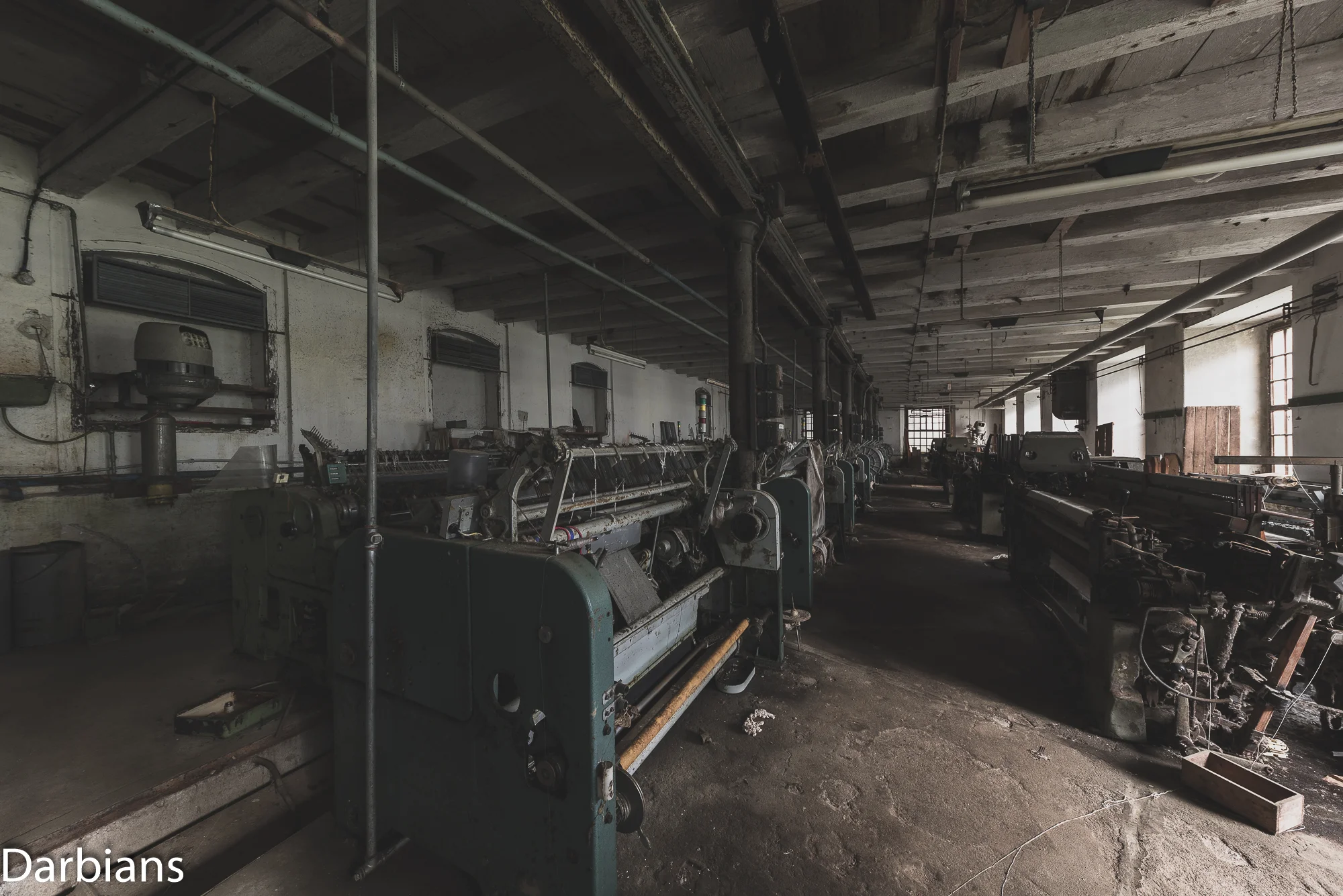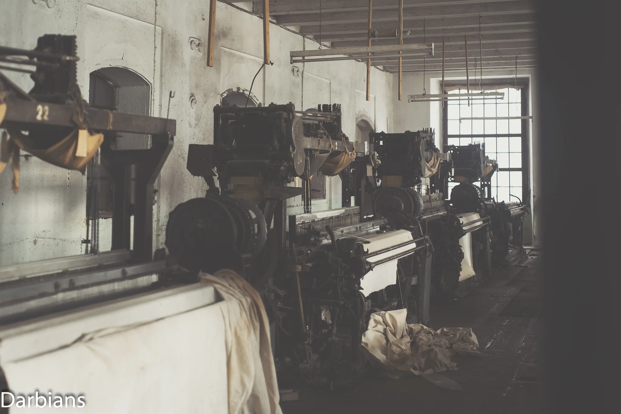 The large Schlafhorst finishing machine was fed by yarn from here which it weaved into fabric.