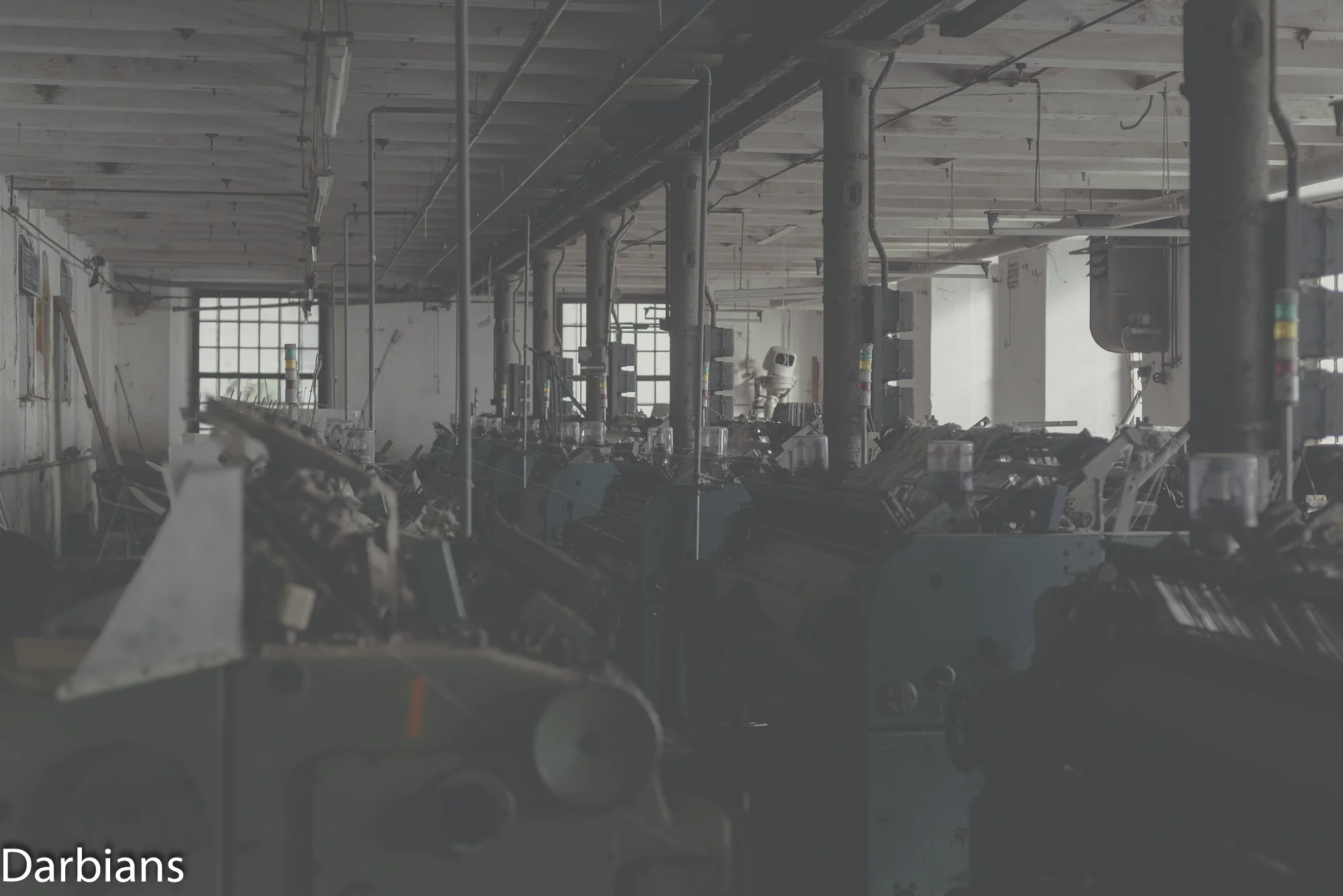Stenter machine floor. These machines gauge the thickness of the thread.