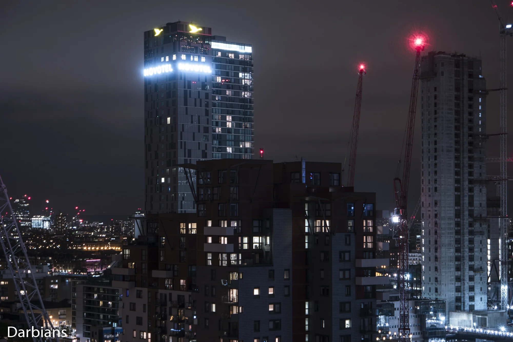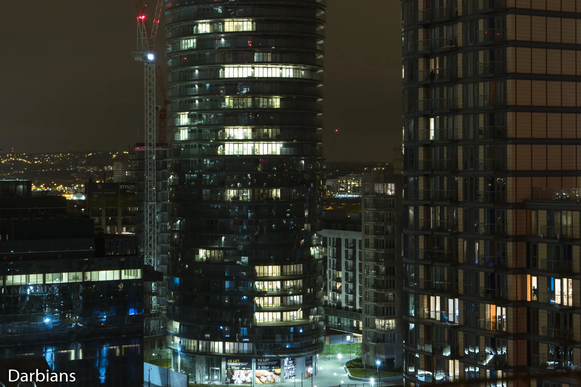 Canary Wharf Rooftop. Looks to me like there is a couple watching tv in bed.
