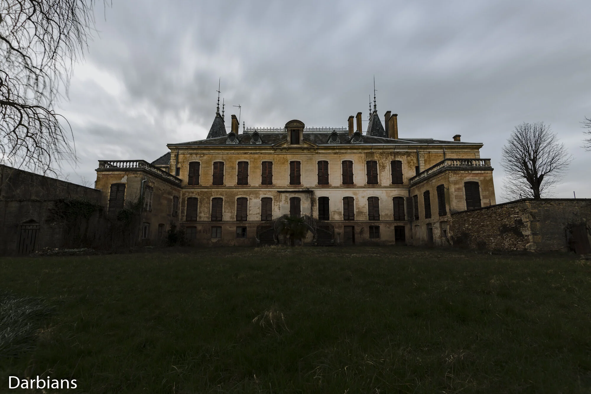 Chateau Du Pilote: External from the rear. Which is nicer than the front. Used ND filters to blur out the sky and got funny blur from the tree.