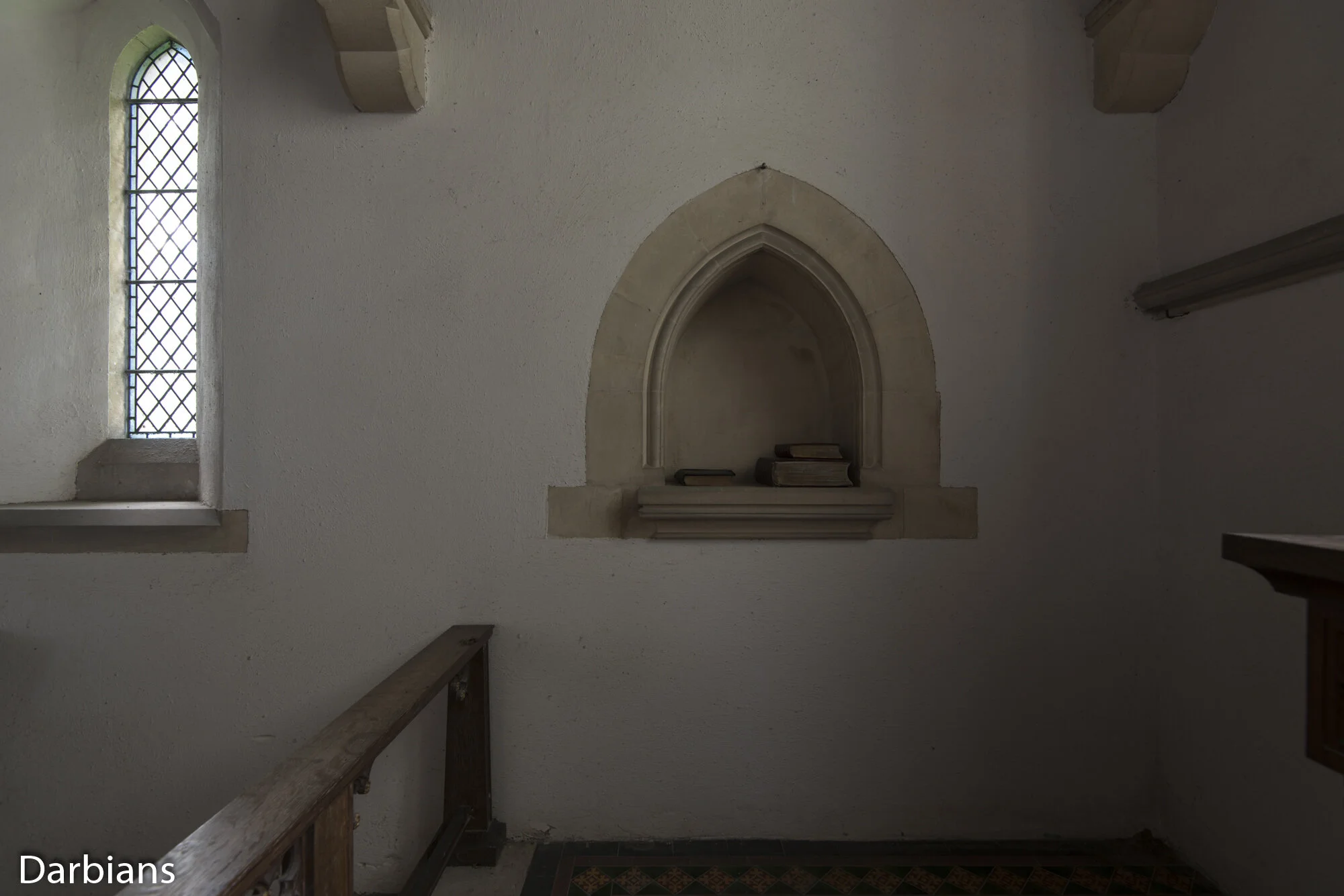 Church Of All Saints Norfolk: A small cubbyhole holds some books.