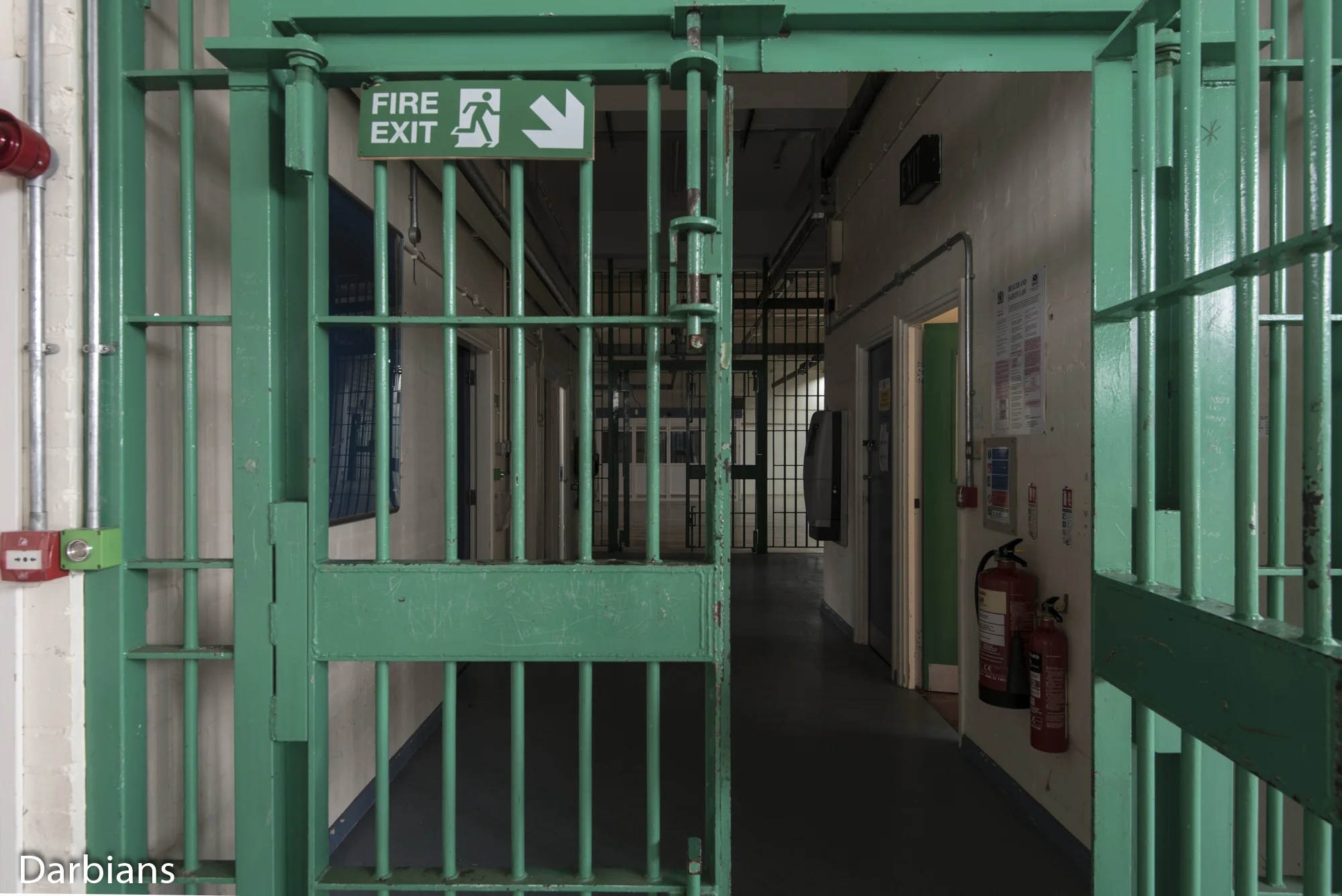 Dana Prison Shrewsbury. Large gates separated all the areas of the prison.