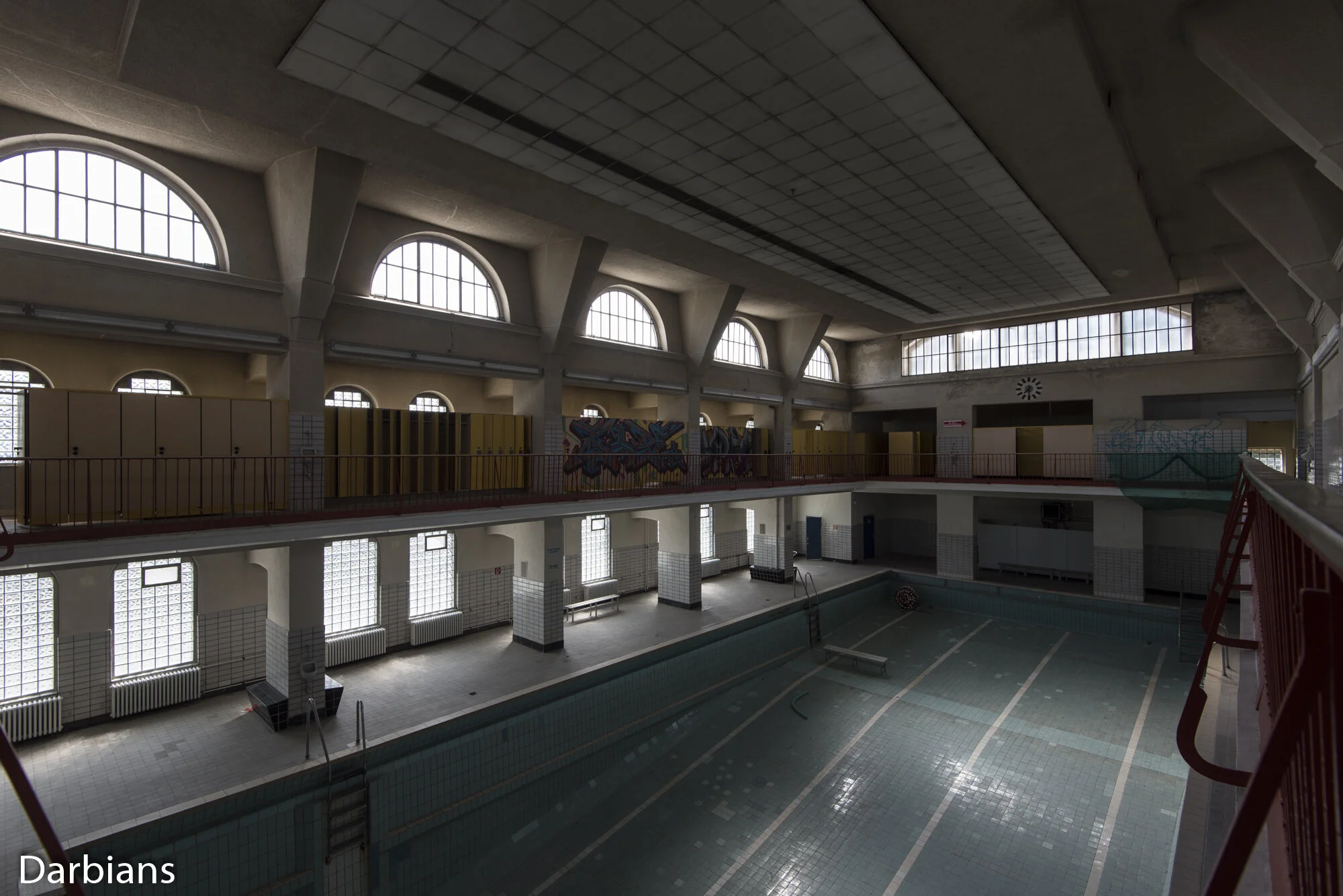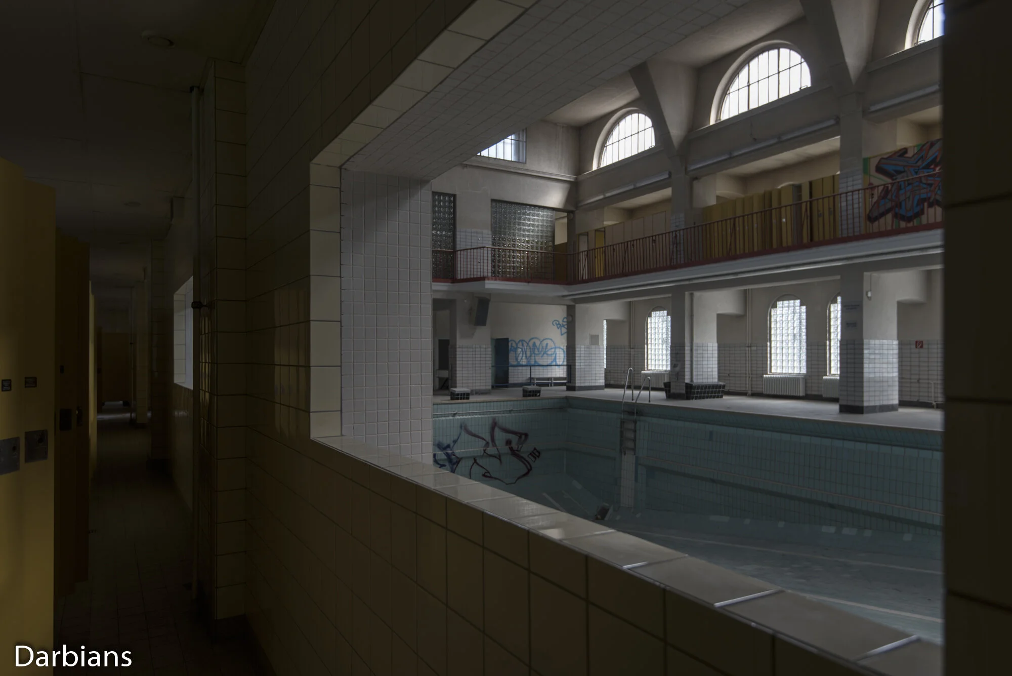 Das Hallenbad: A small balcony surrounds the whole pool.