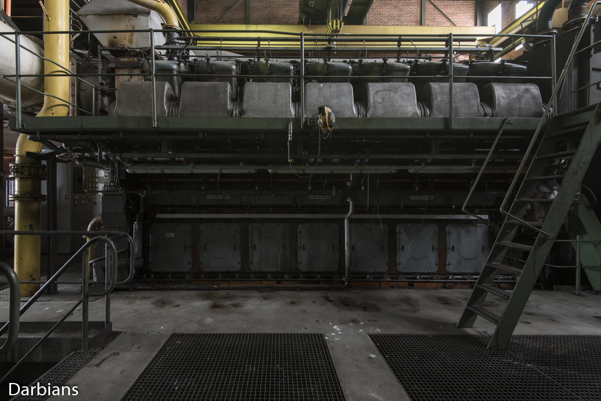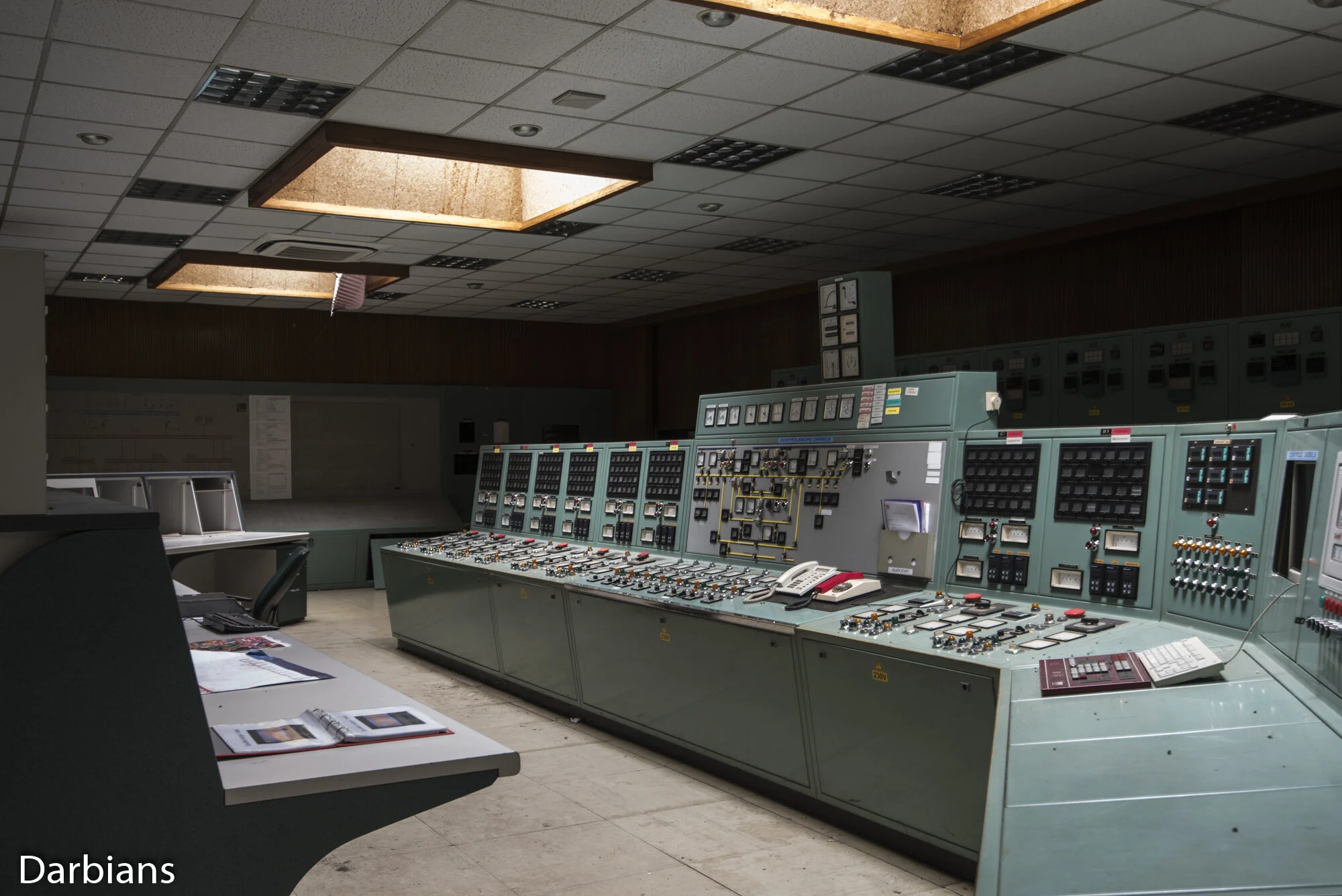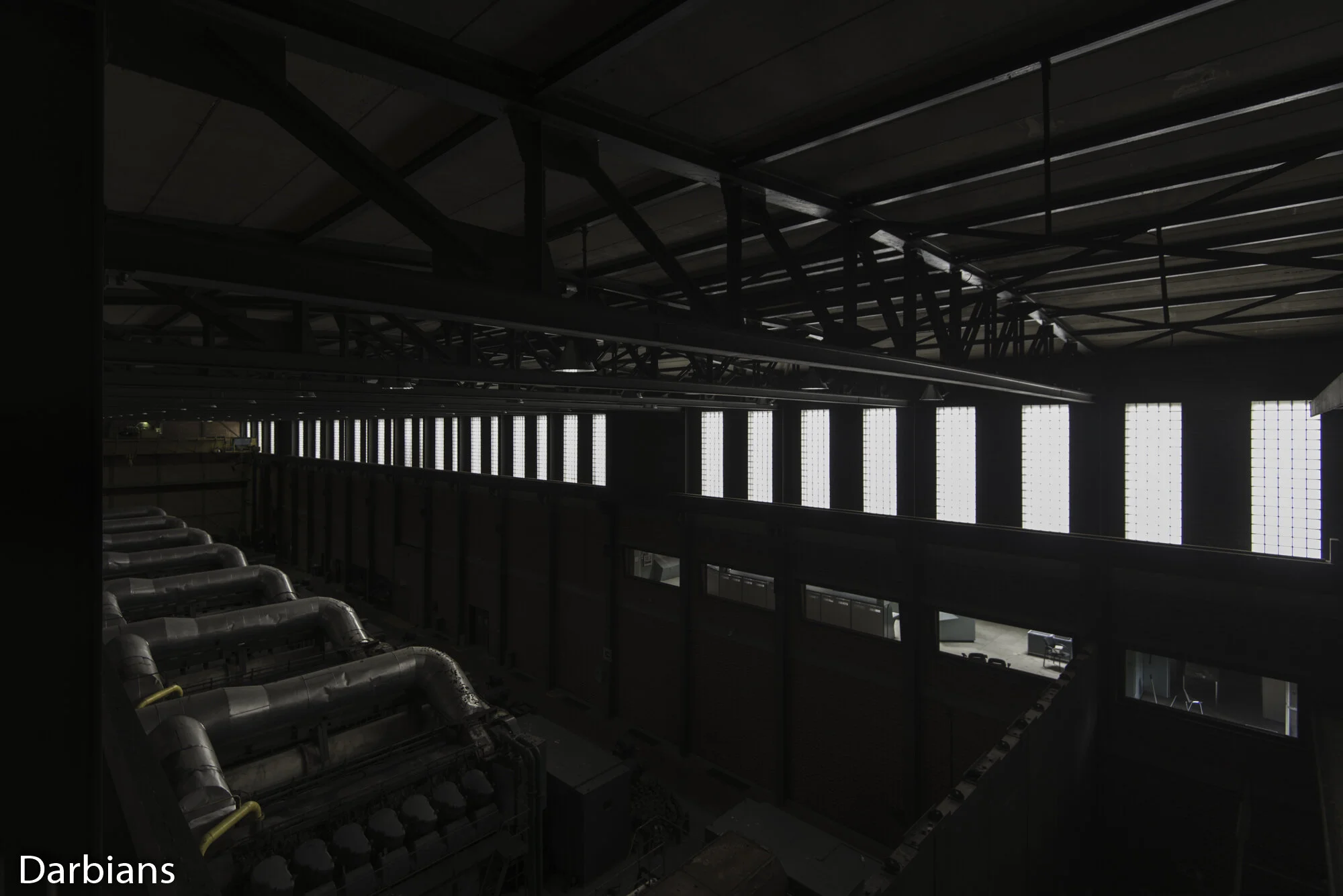 Diesel Farm: Looking down to the turbine hall and into the control room.
