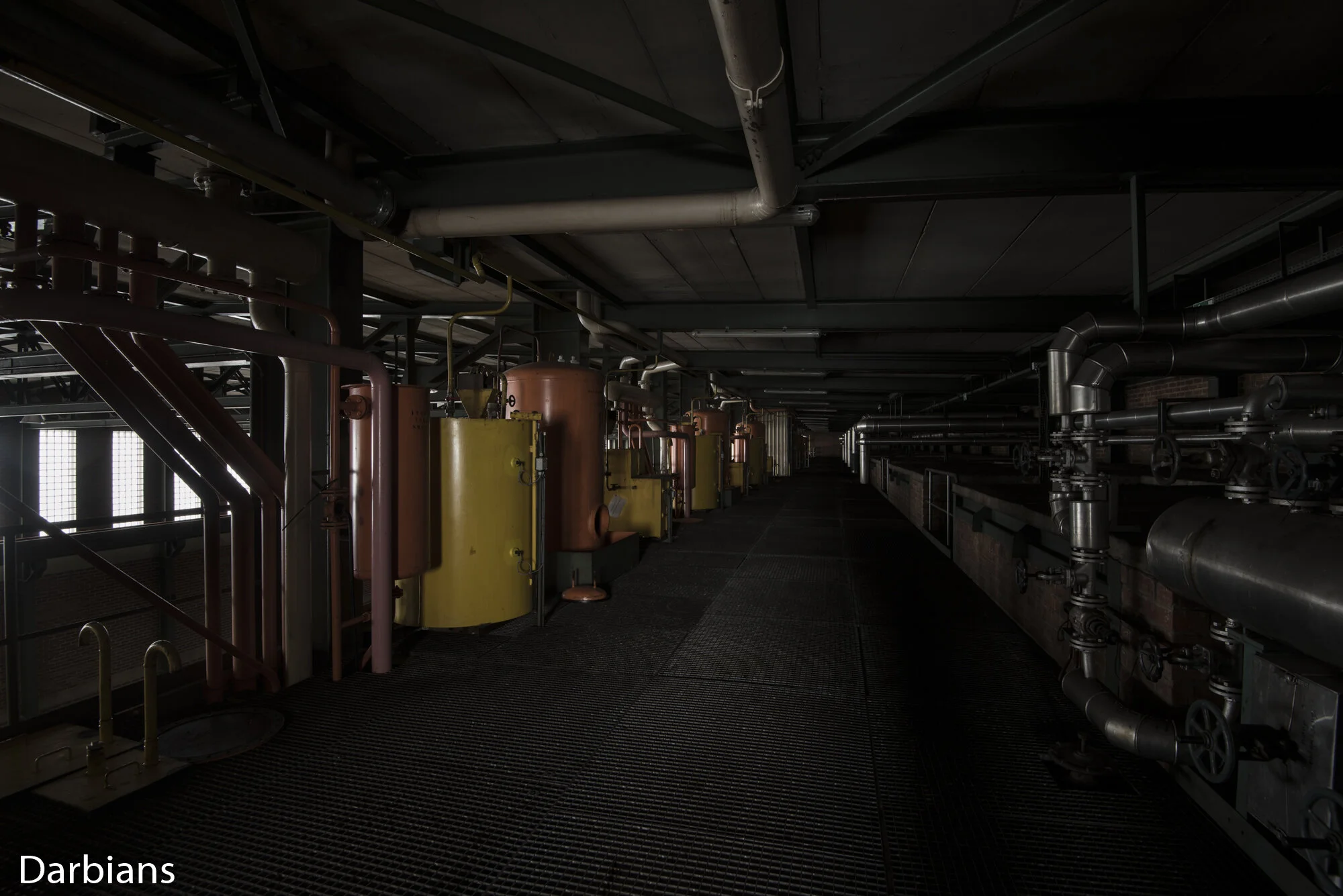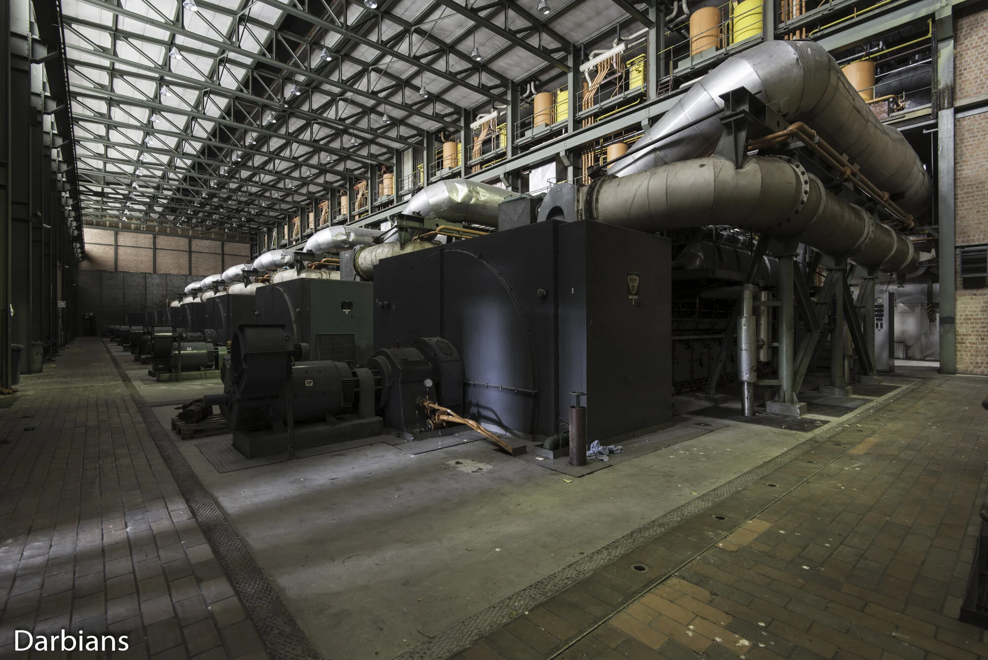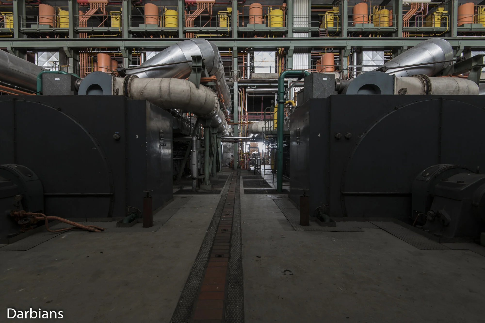 Diesel Farm: Looking down to the turbine hall and into the control room.