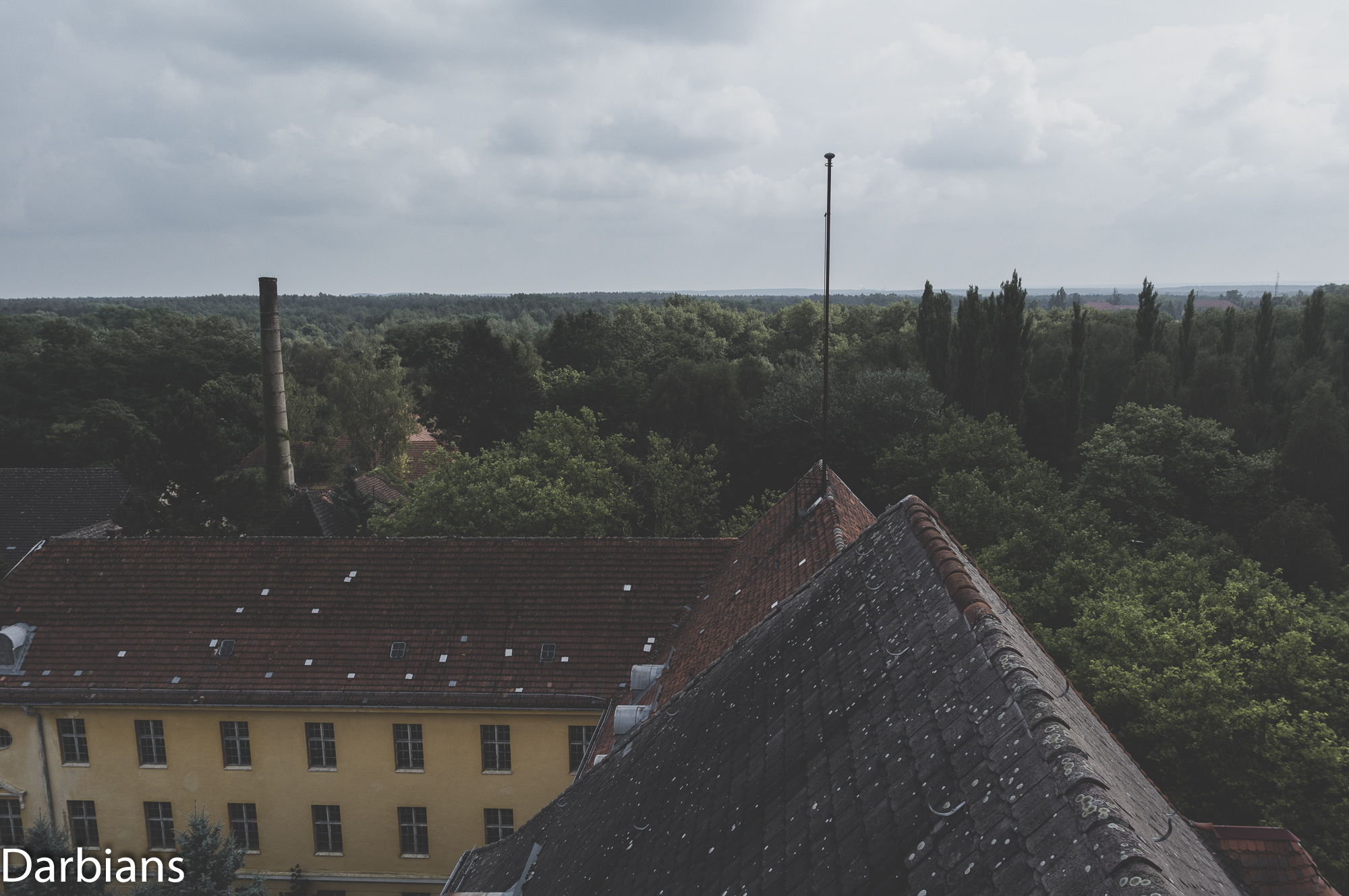 Haus Der Offiziere Wünsdorf Main Building. Set in Dense forest, the chimney is from the boiler house at the swimming pool.