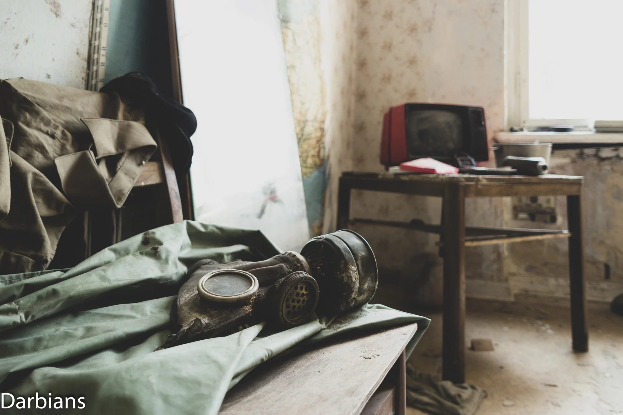 Haus Der Offiziere Wünsdorf Main Building. Close up of gas mask.