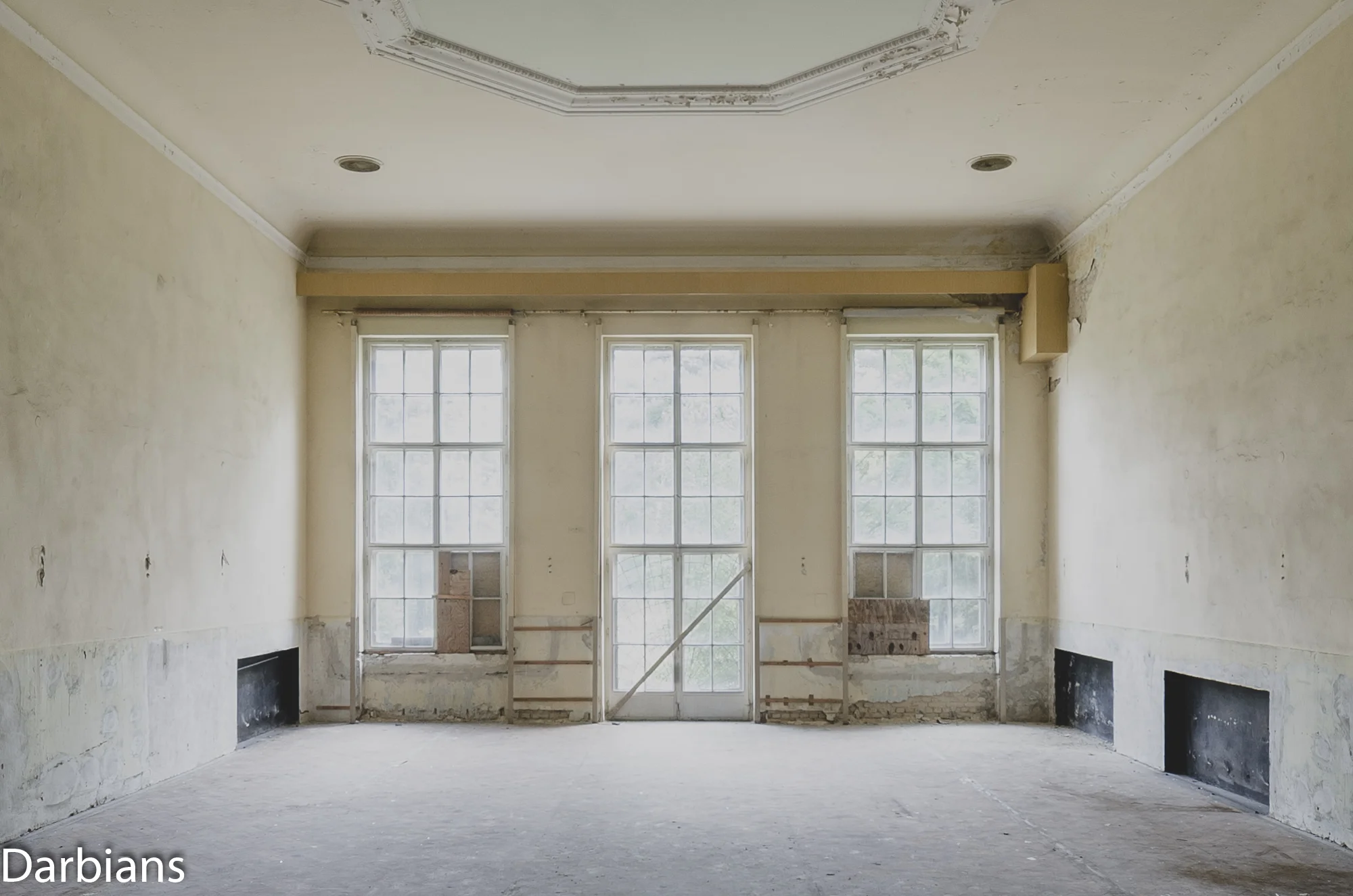 Haus Der Offiziere Wünsdorf Swimming Pool. A close up of the windows and door to the small hall.