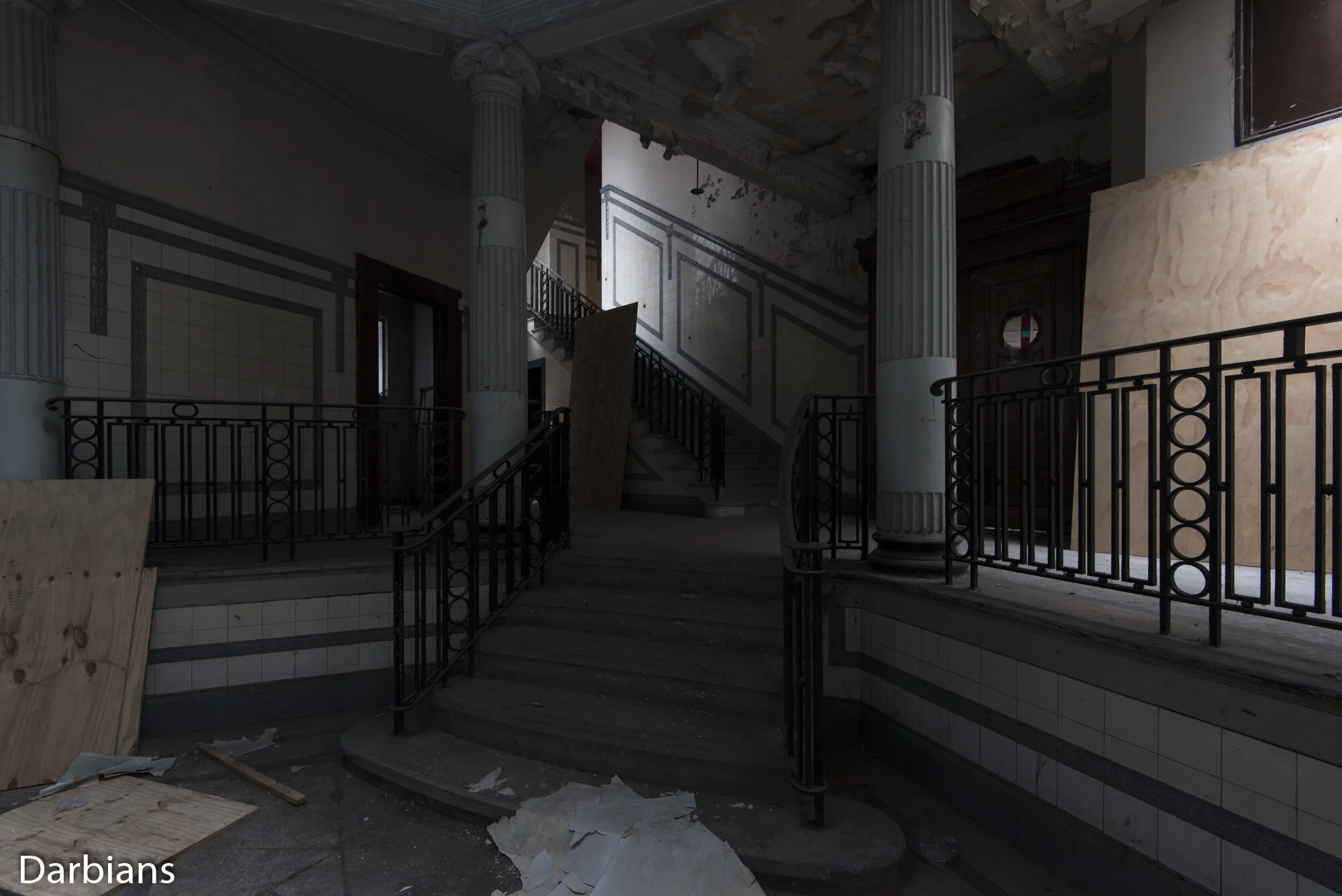 Liverpool Fruit Exchange: Another staircase goes up to the left.