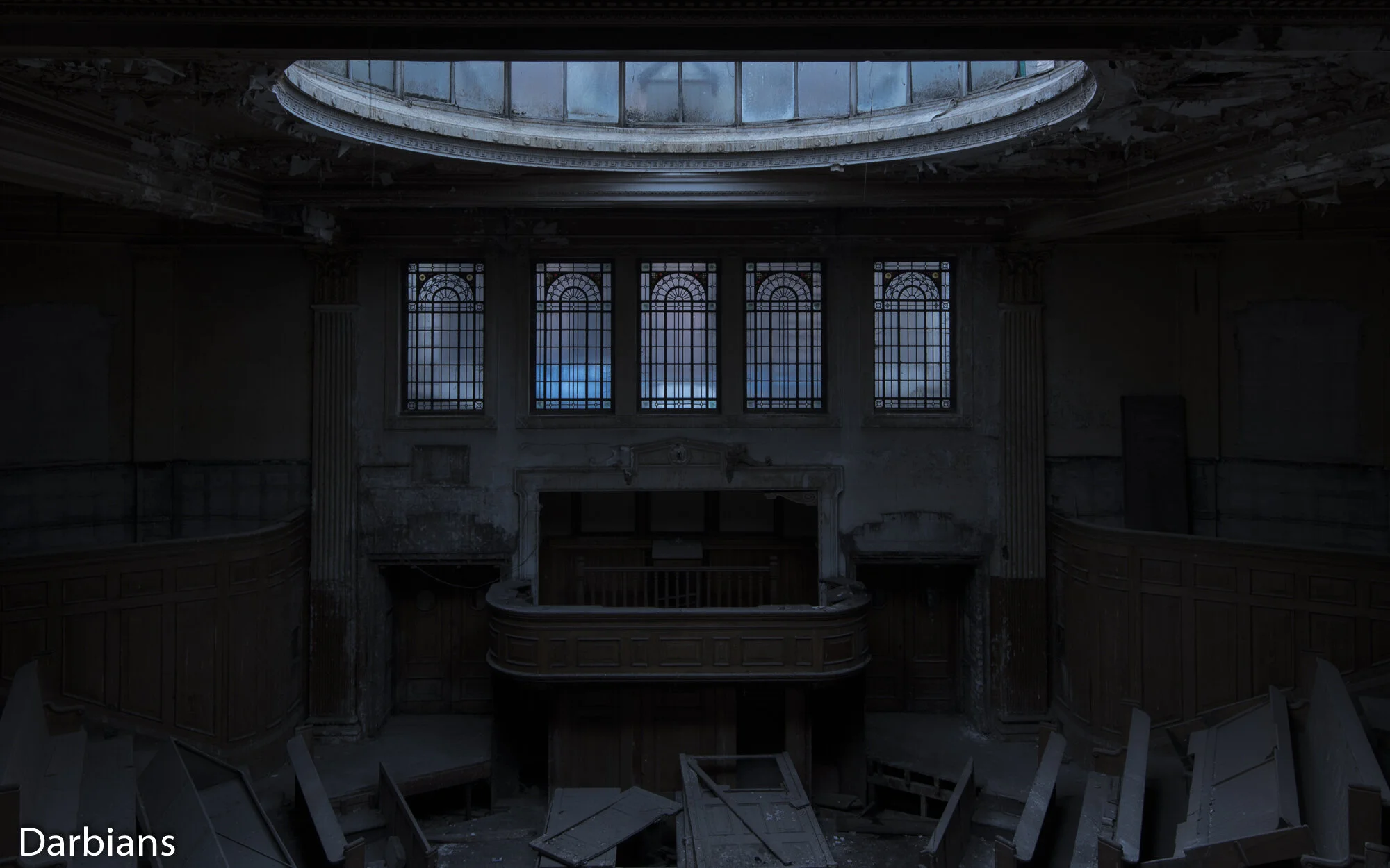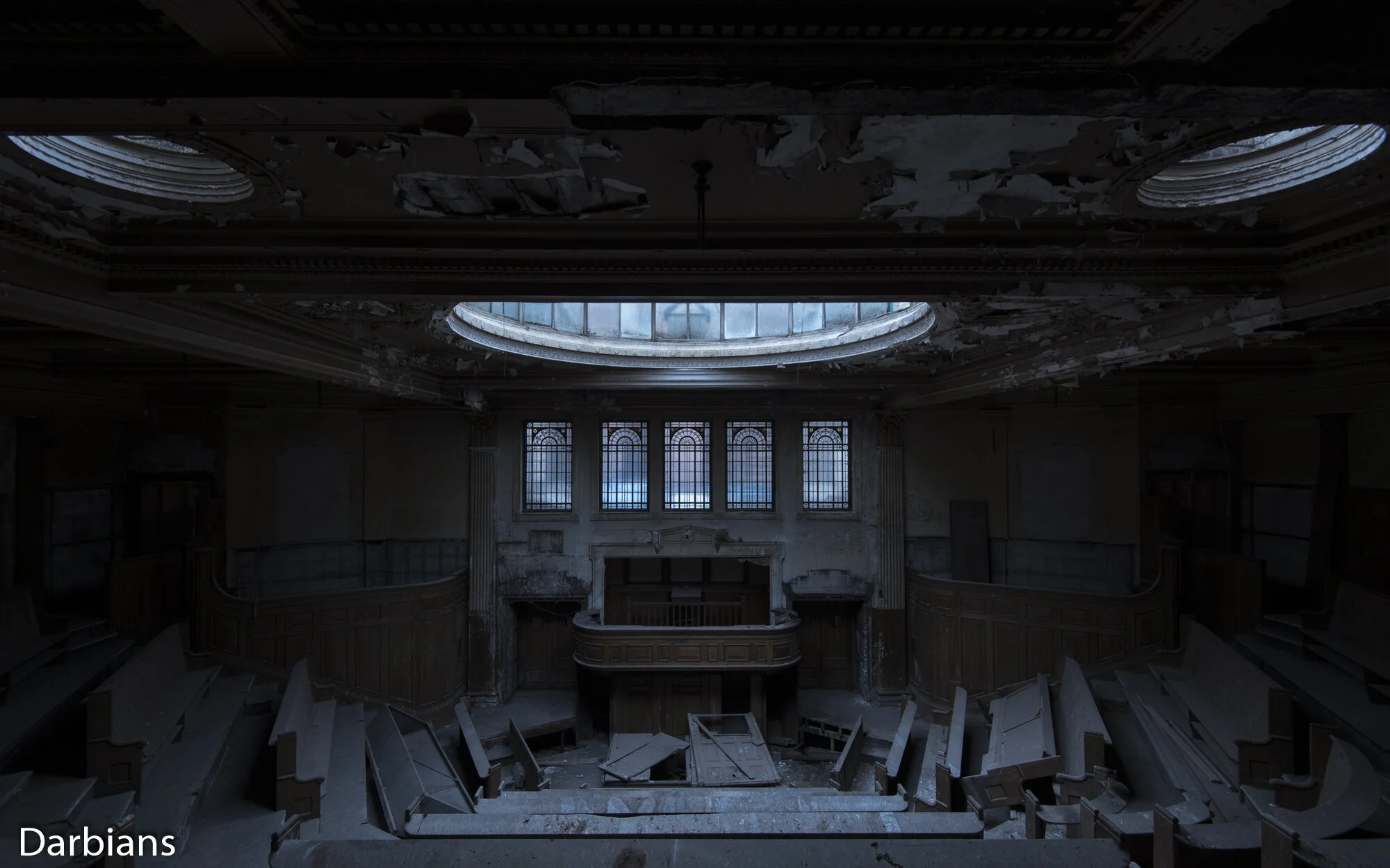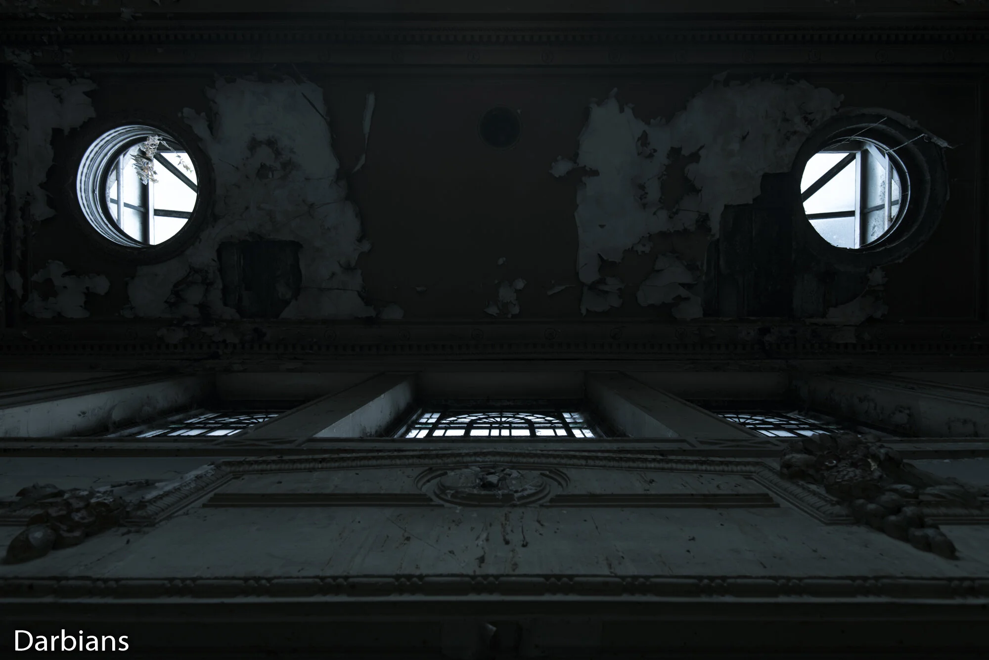 Liverpool Fruit Exchange: Up high in the darkness you can see all the hall.