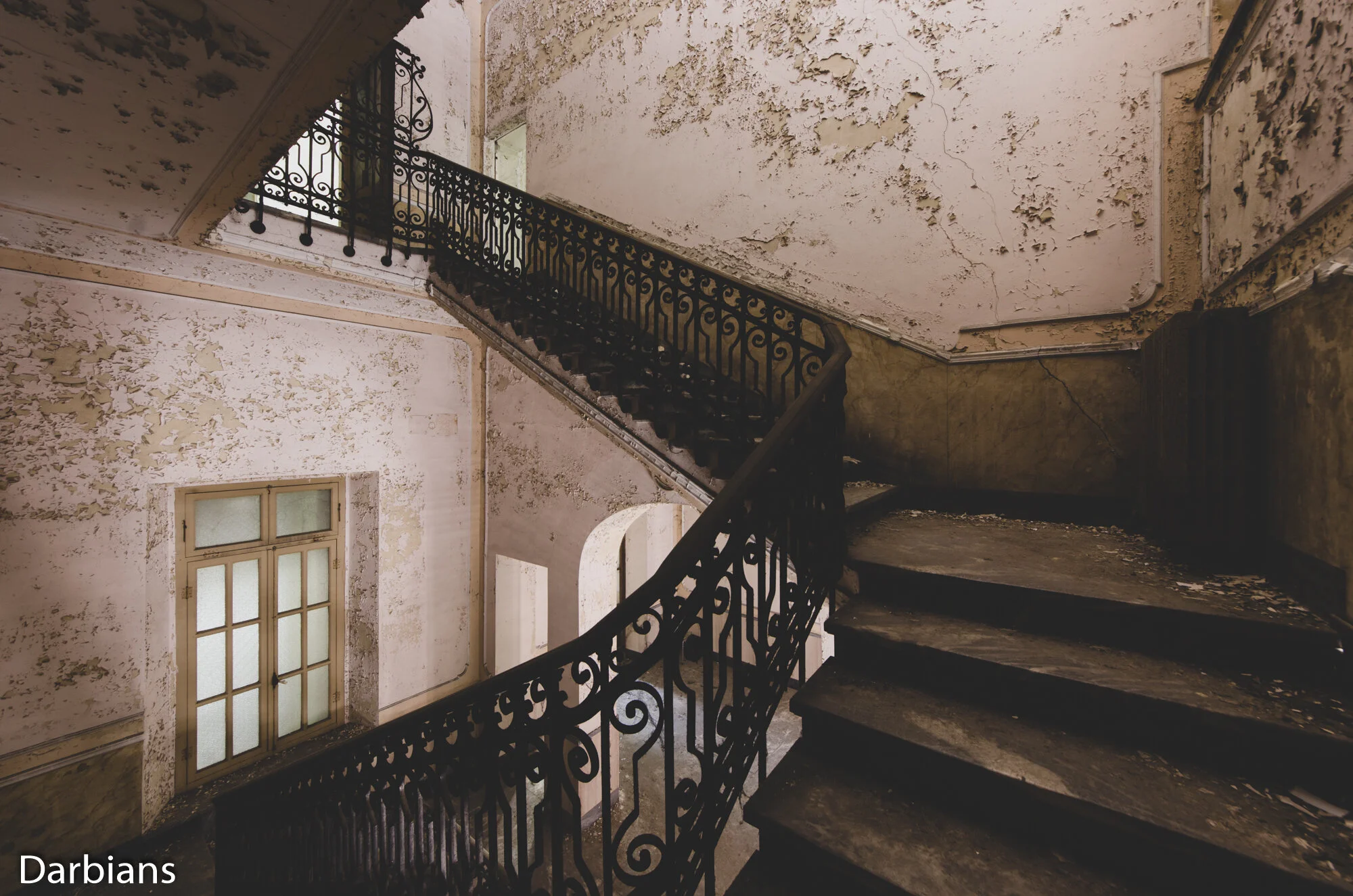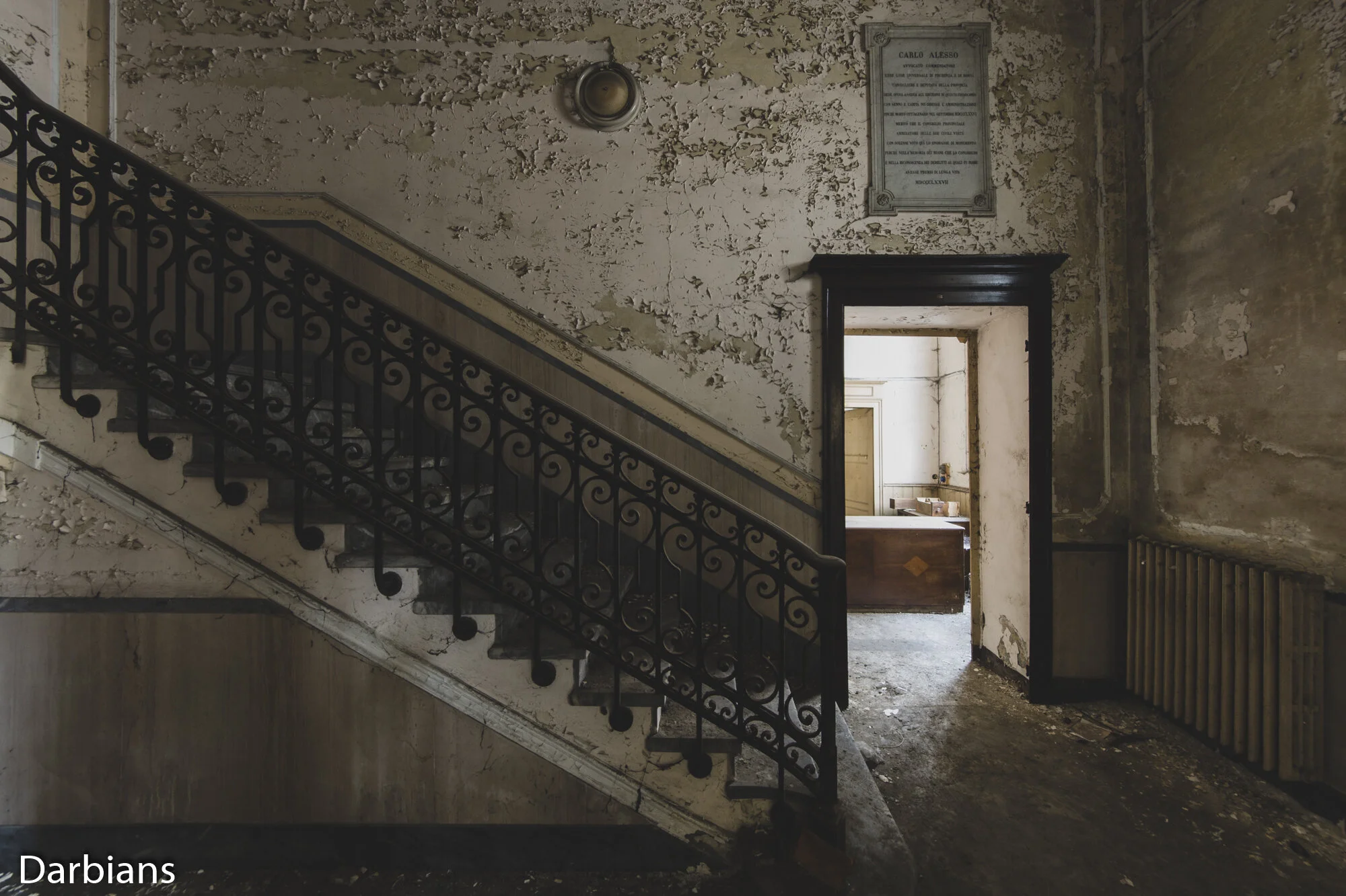 Manicomio Di R: Ground floor of the staircase leads to the entrance hall and an office.