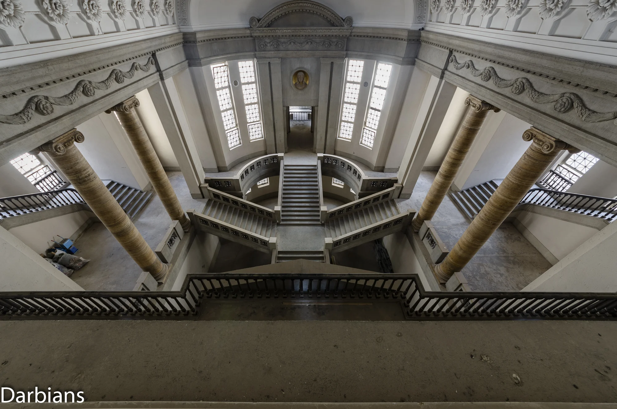 Looking up from the middle of the main staircase.