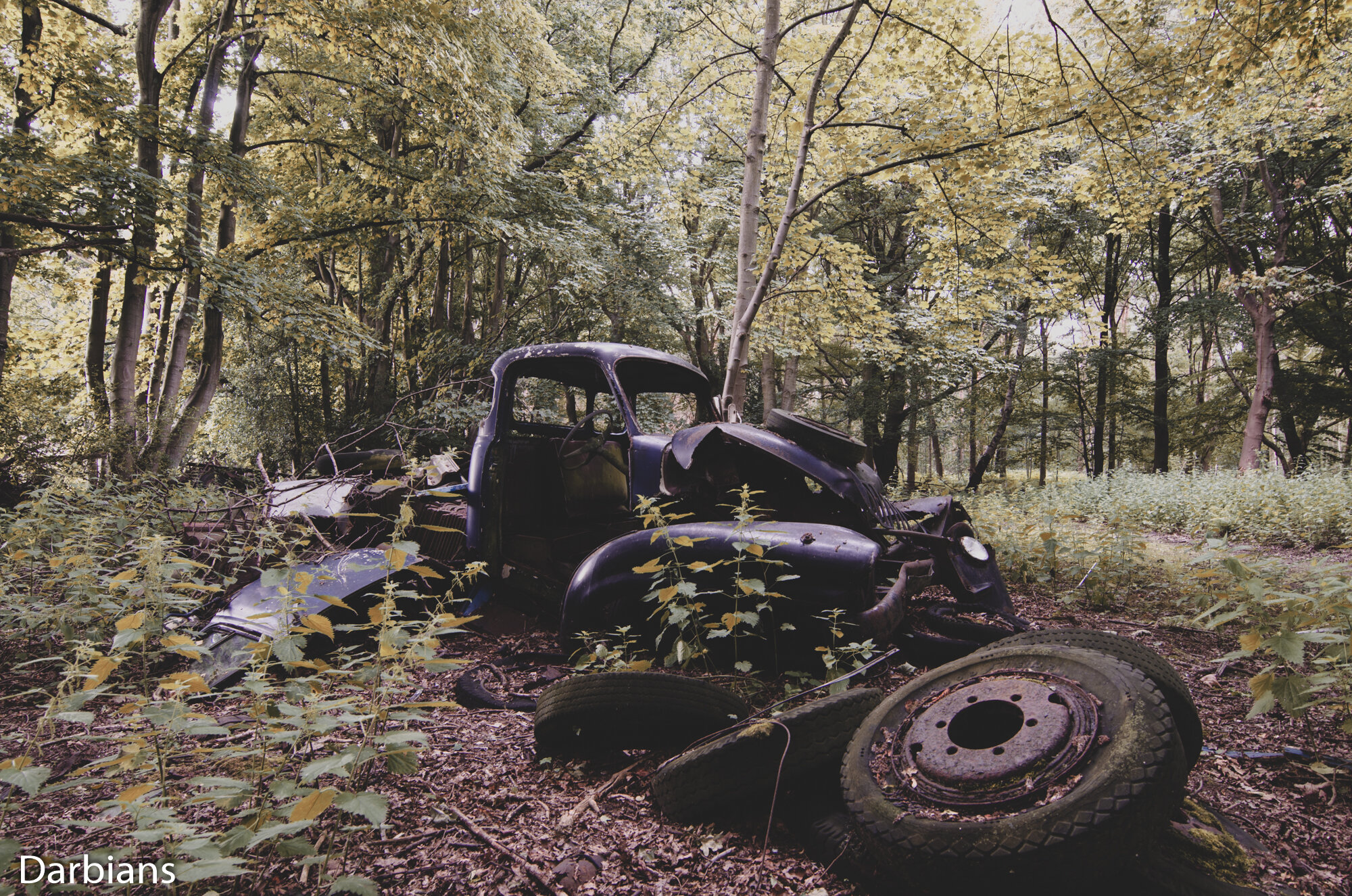 Meddlers Scrapyard: Another lorry hiding in the trees.