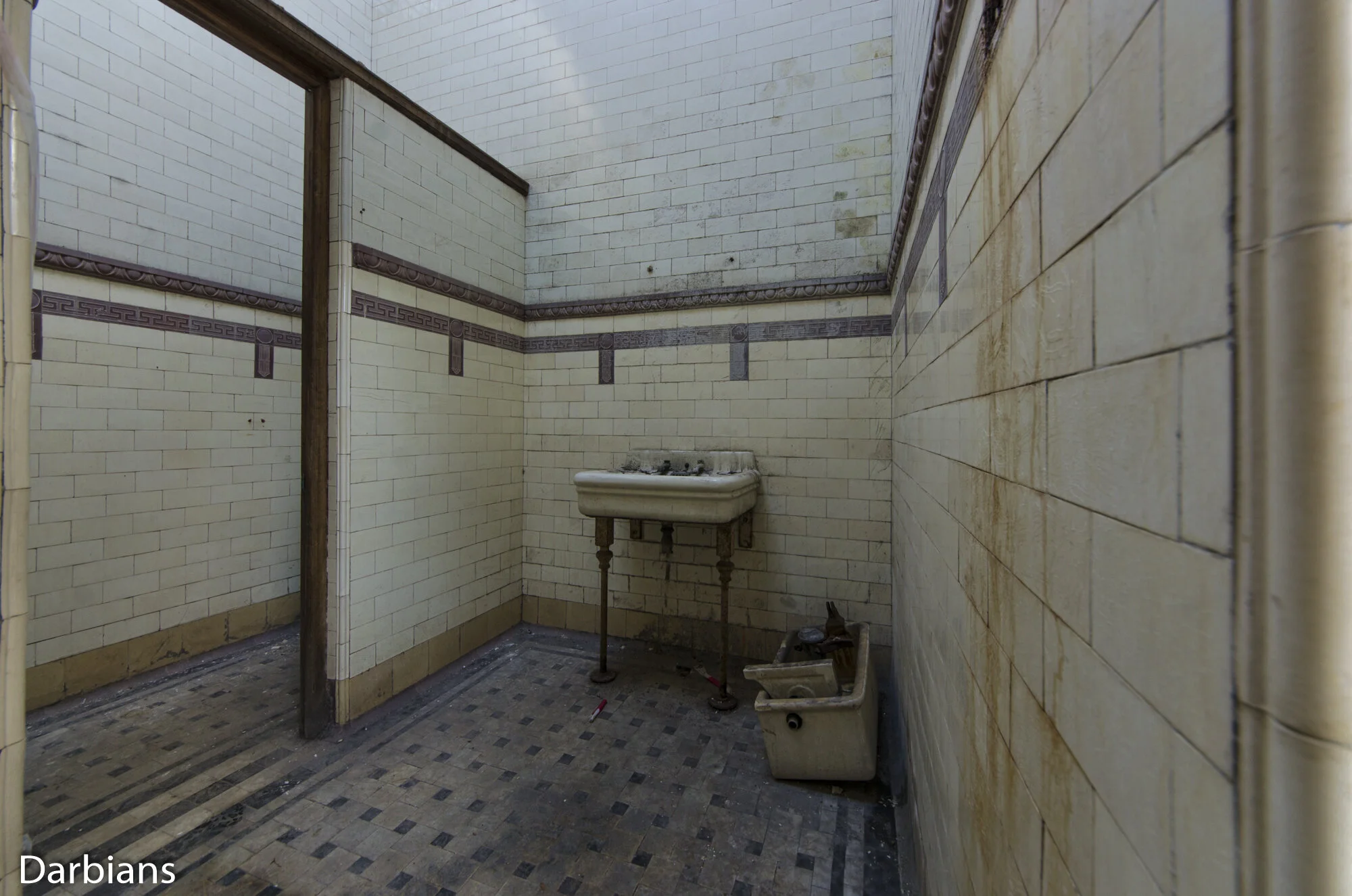 Buxton bath house: Back in the lobby. Looks like we head down for decay.