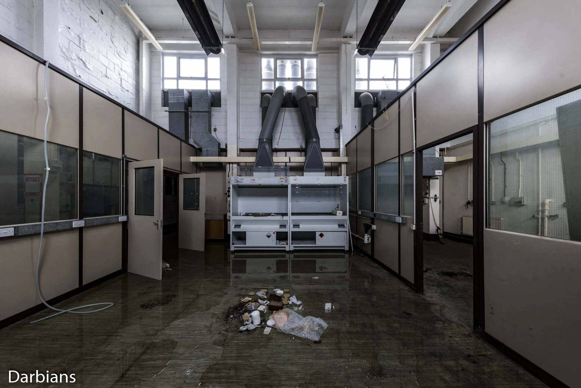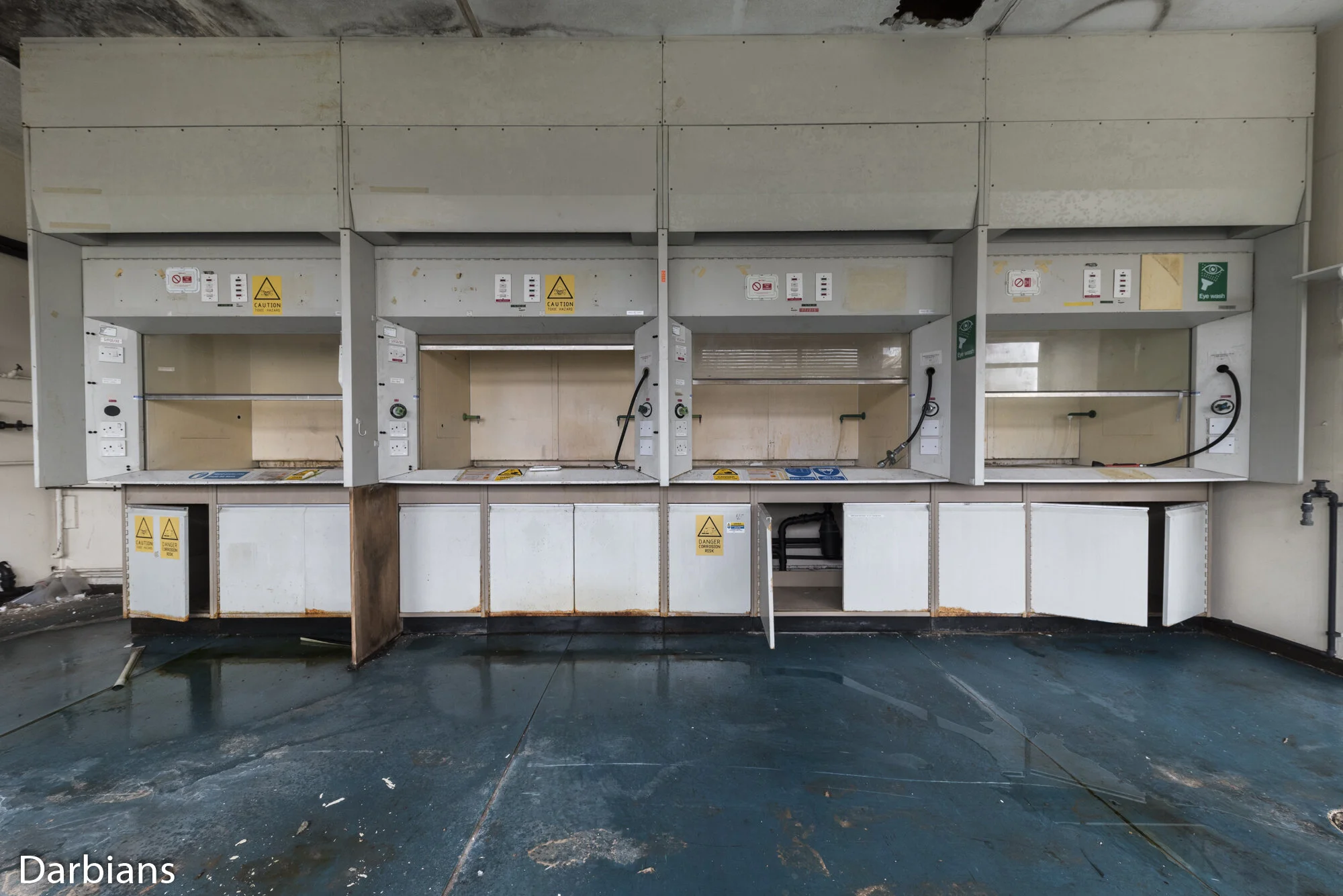 QinetiQ Malvern Technology Centre: It seems to show a lot of promise as we finally gain access to one of the buildings and find a number of labs. The fume hood/extractor cabinets feature prominently throughout the site.