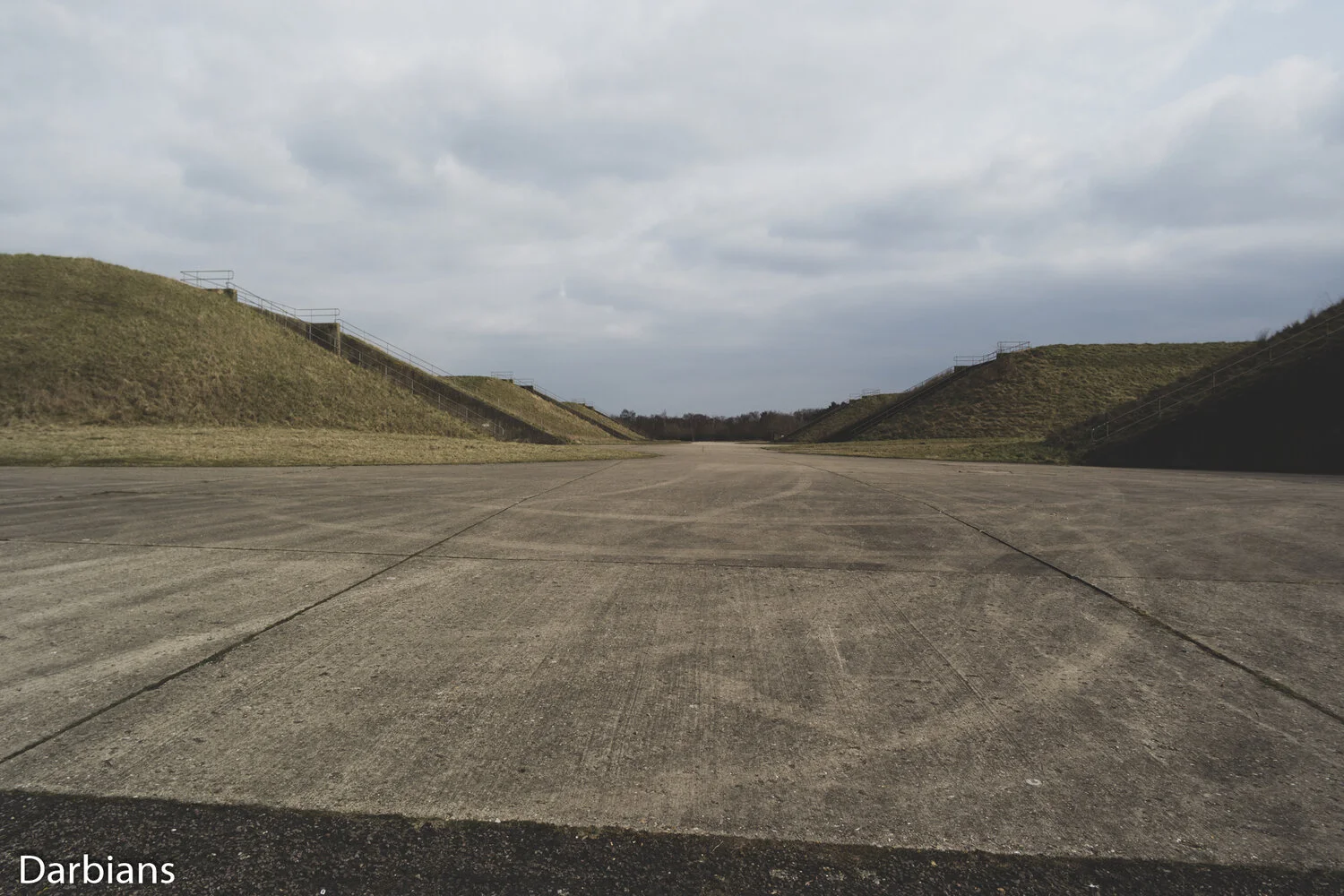 RAF Greenham Common: Head on view of one of the silos. Sadly these were being used for storage.