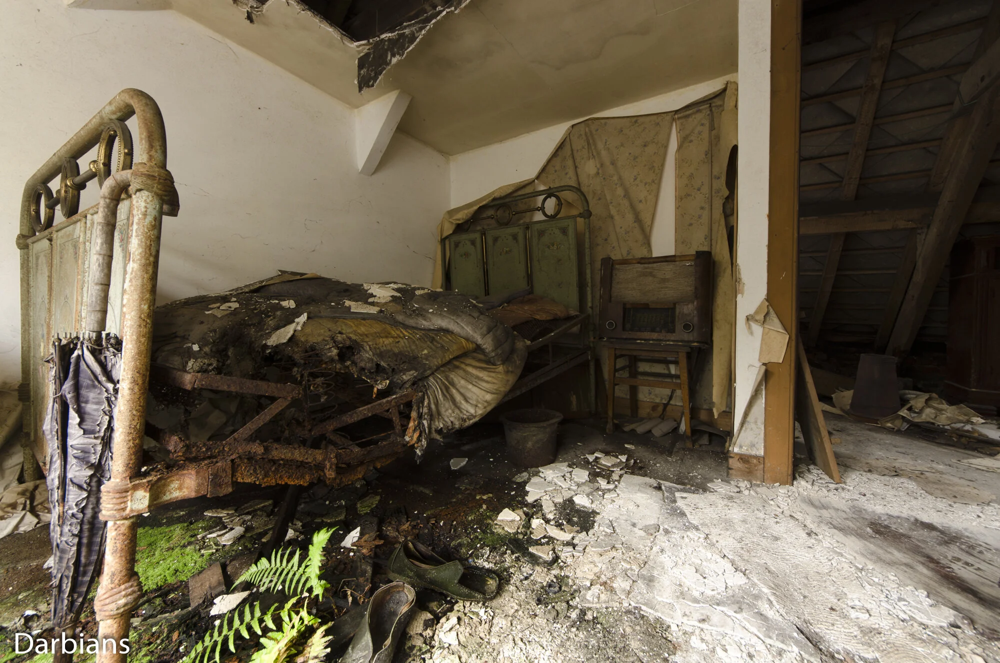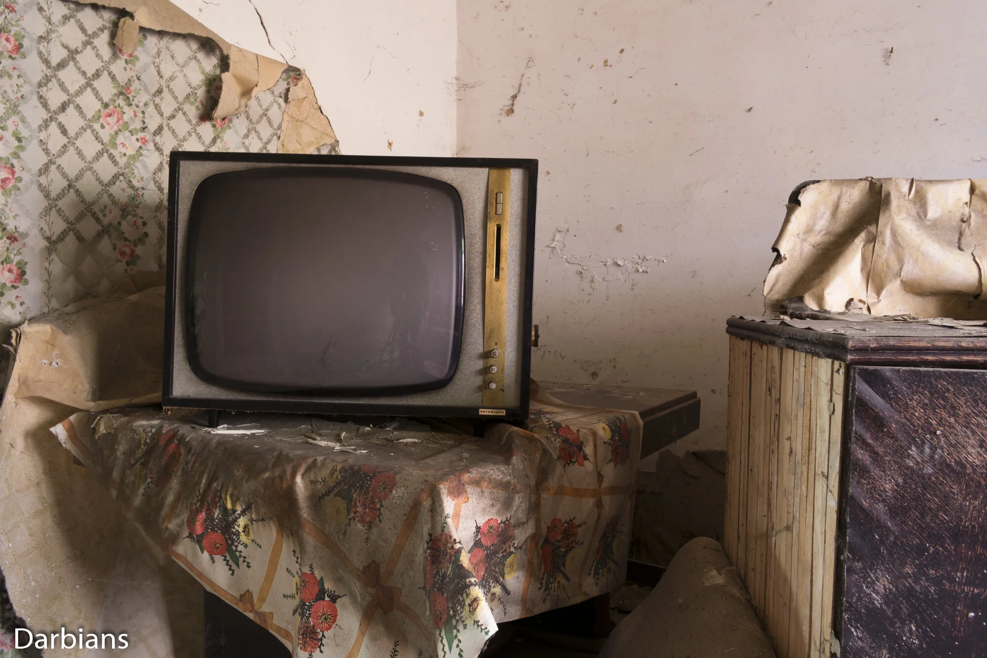 Red Diesel Farm: A room full of cobwebs and an old television.
