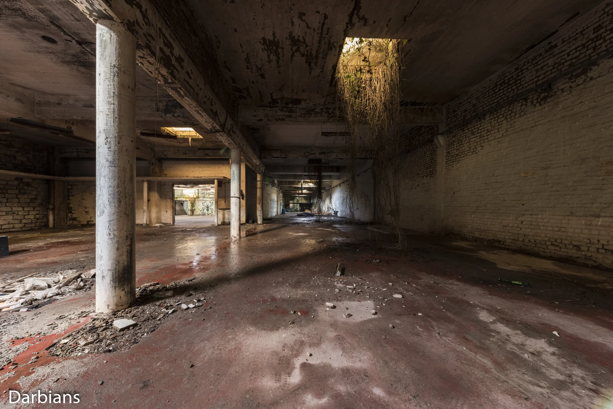 Skeleton Factory: Overgrowth coming from the roof down to the floor.
