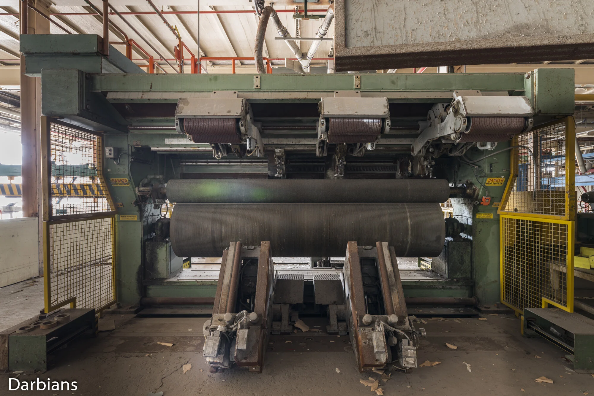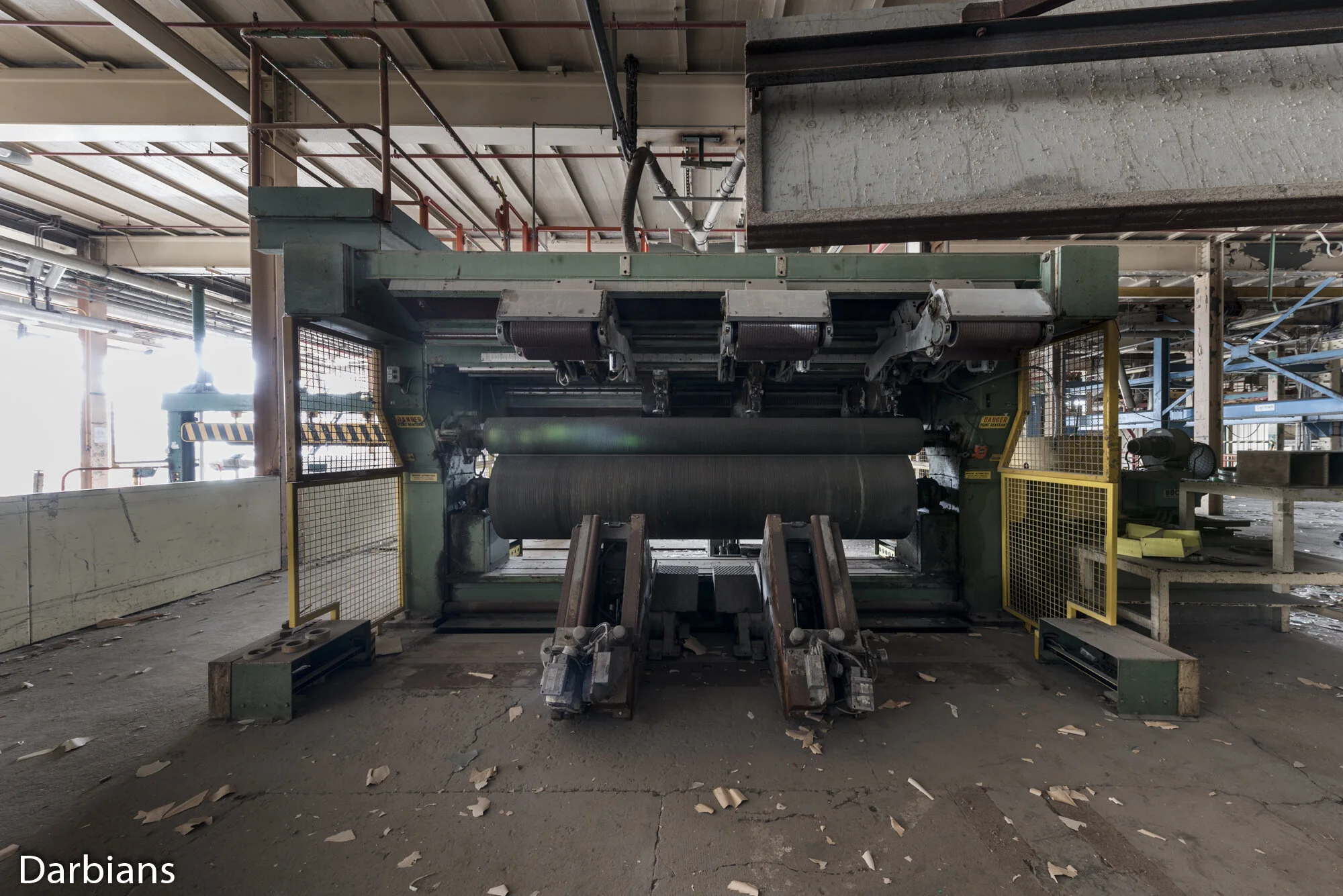 Stora Enso Paper Mill PM3 and PM4: The top of the Valmet Winder. Again the blown highlights in the background are due to the lack of walls.
