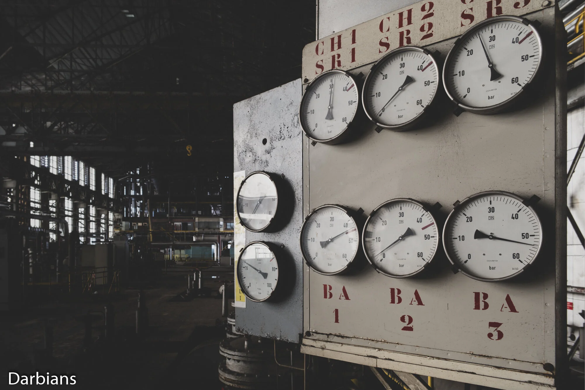 Blue Power Station Carsid:The control room housed a large control desk and the wall was fairly full too.