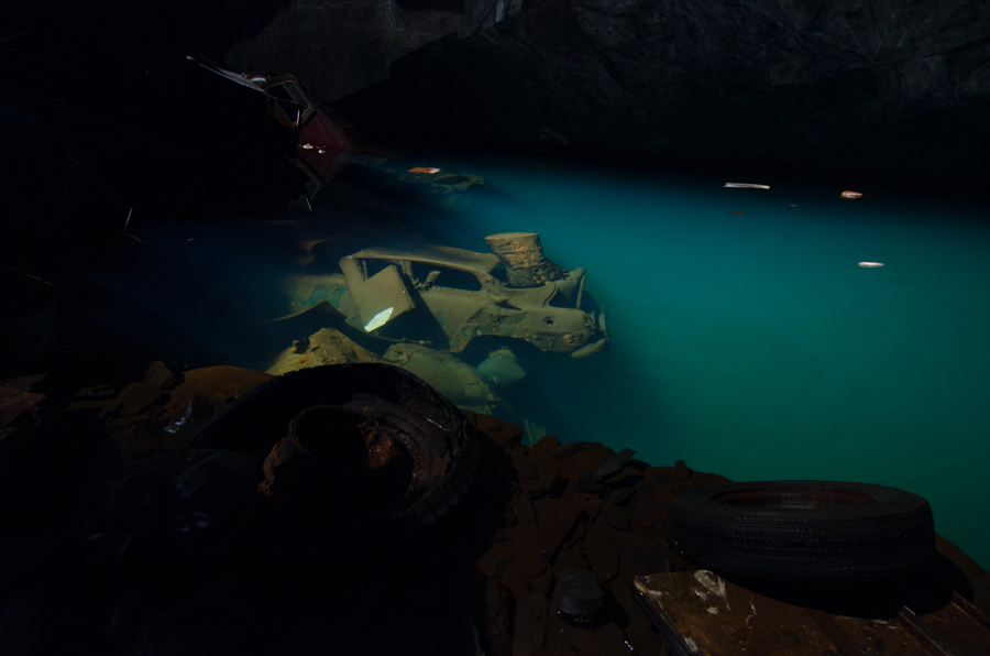 What a car graveyard this is. Somewhere in a Welsh flint mine is an underground lake full of cars, it is possibly the most amazing car graveyard you will ever see.