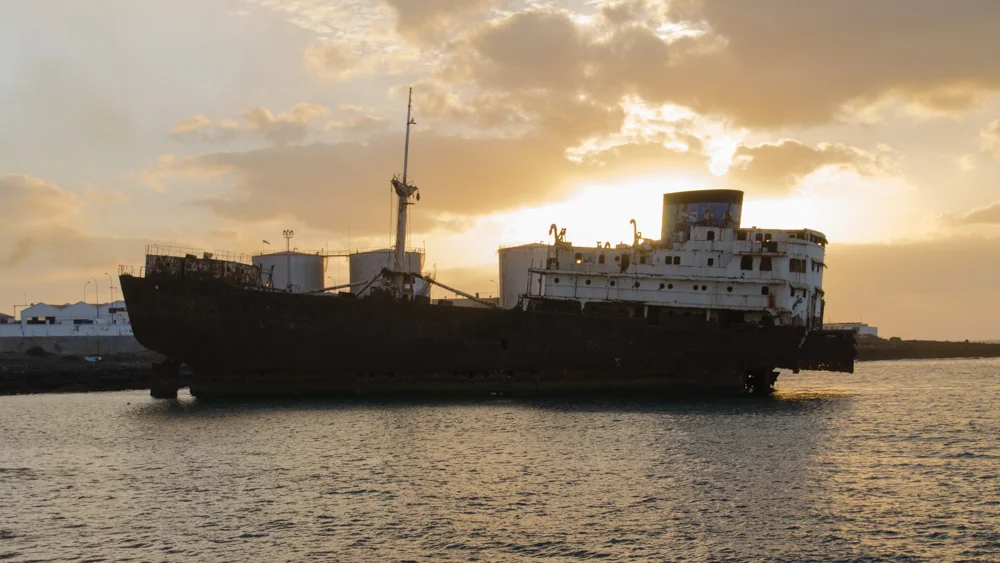 An abandoned cargo ship between Costa Teguise and Arrecife in Lanzaote.