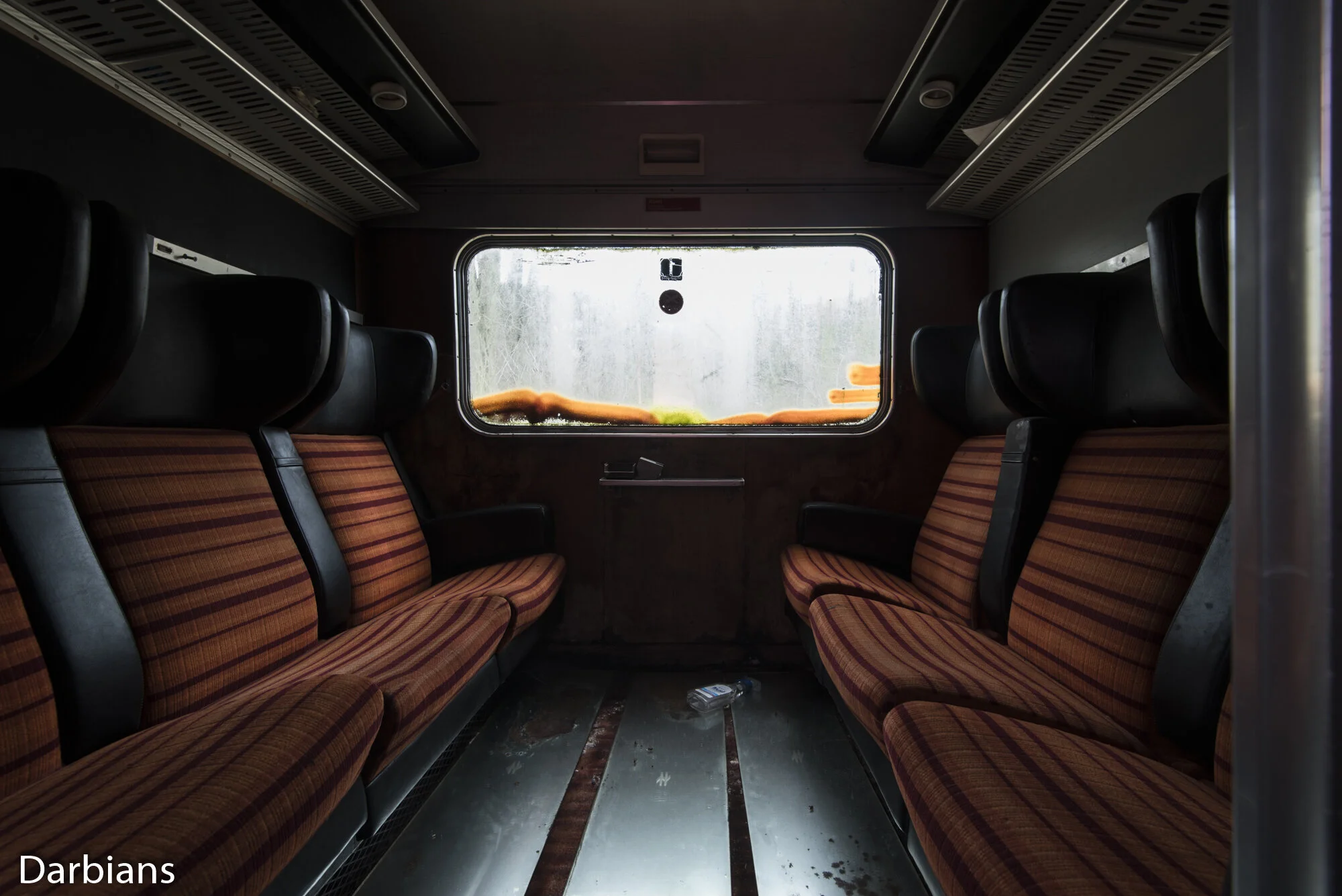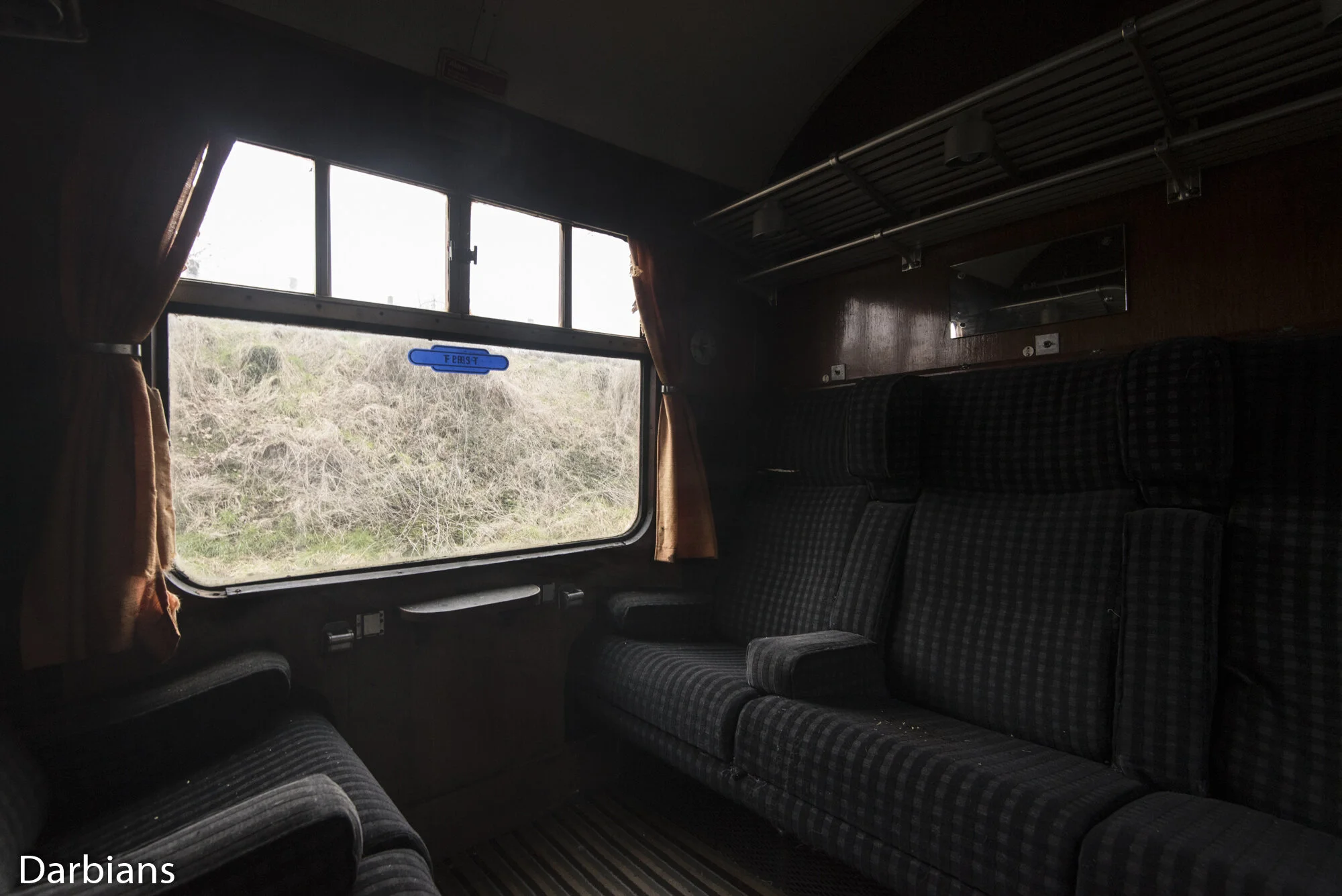 Train Graveyard Norfolk: Twin luggage racks above the seats.