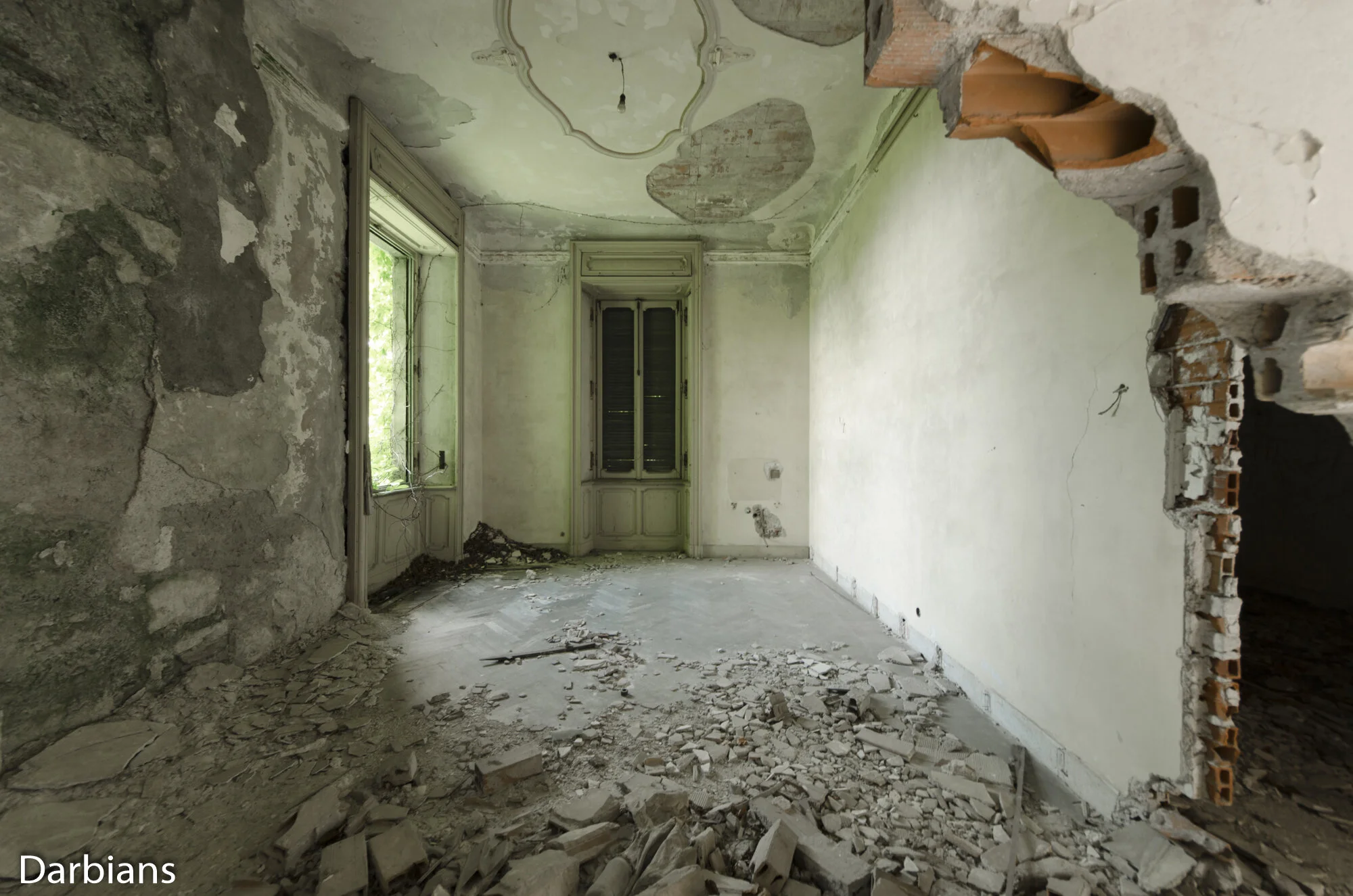 Villa Castelli: A few details remain like the plasterwork above the doorway.