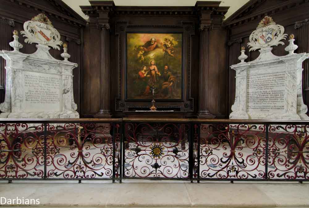 In 1744 the chapel underwent renovations and most of the internal features date back to this period.