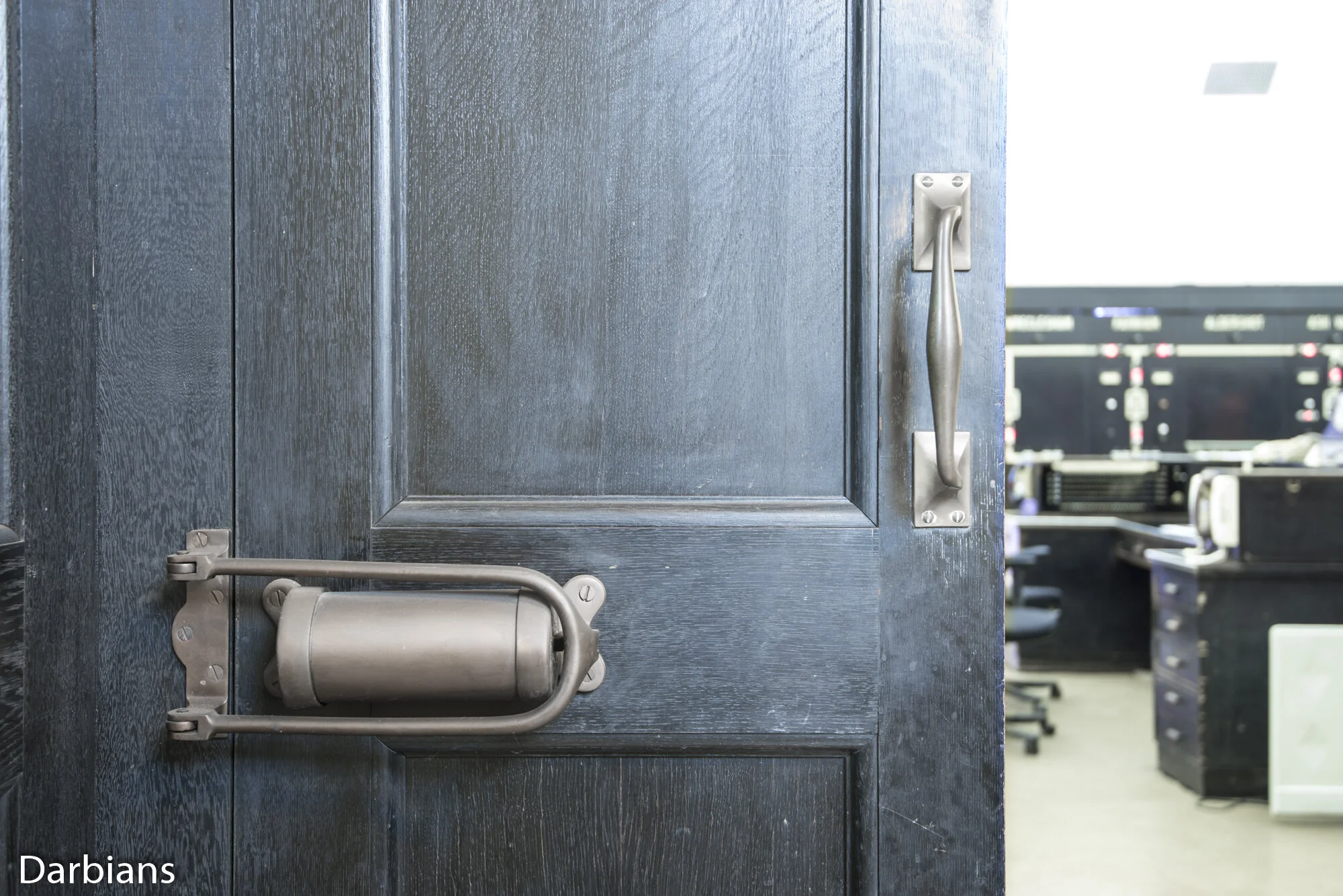 Woking Electrical Control Room: Now that is some beautiful door closing mechanism.