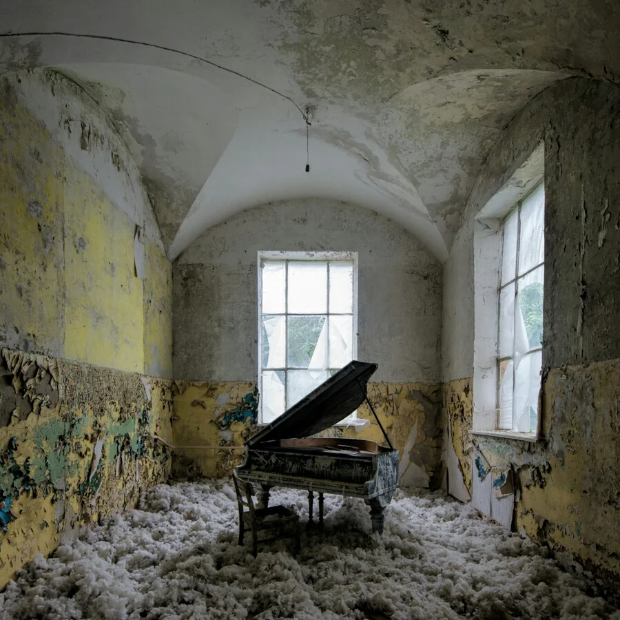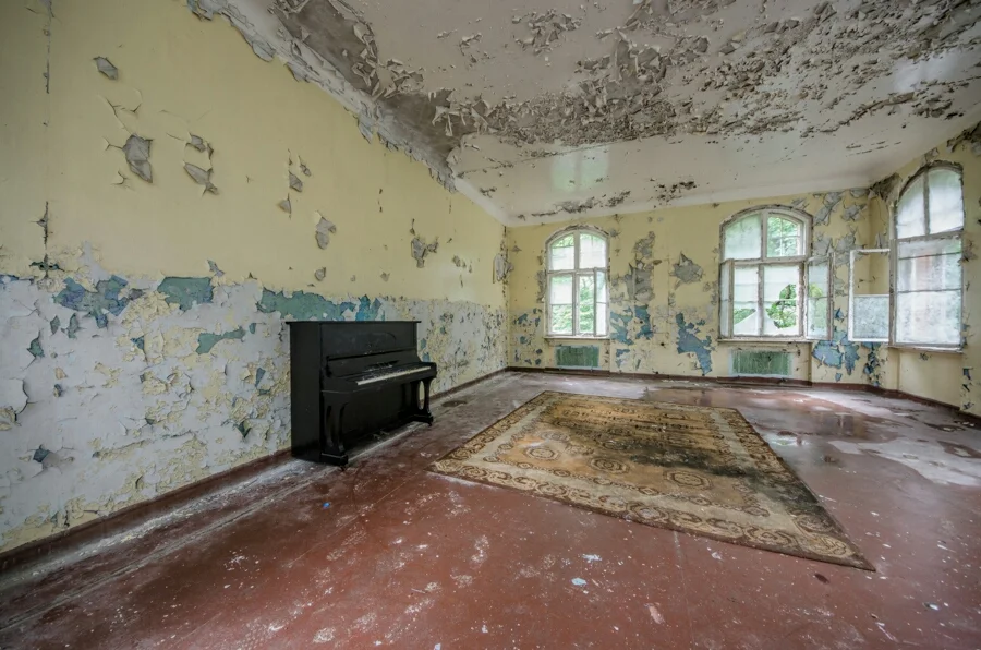 A grand piano used as a prop for a short film is now left in this abandoned hospital.