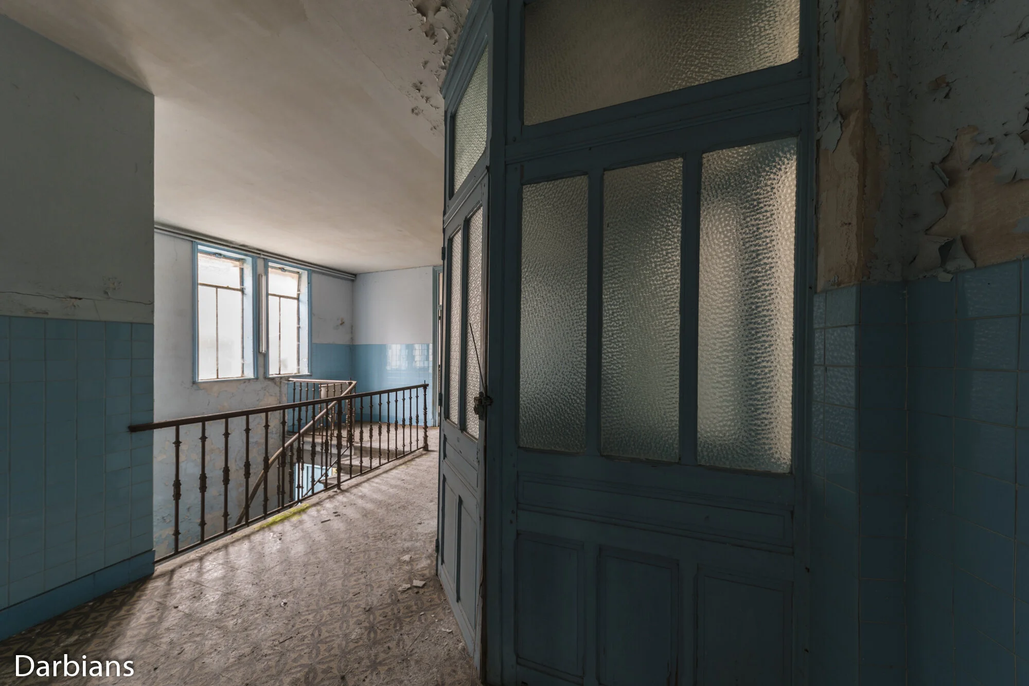 Les Thermes Bleu: Serious decay inside these corridors, the stairs lead up to the pool.